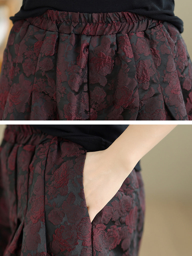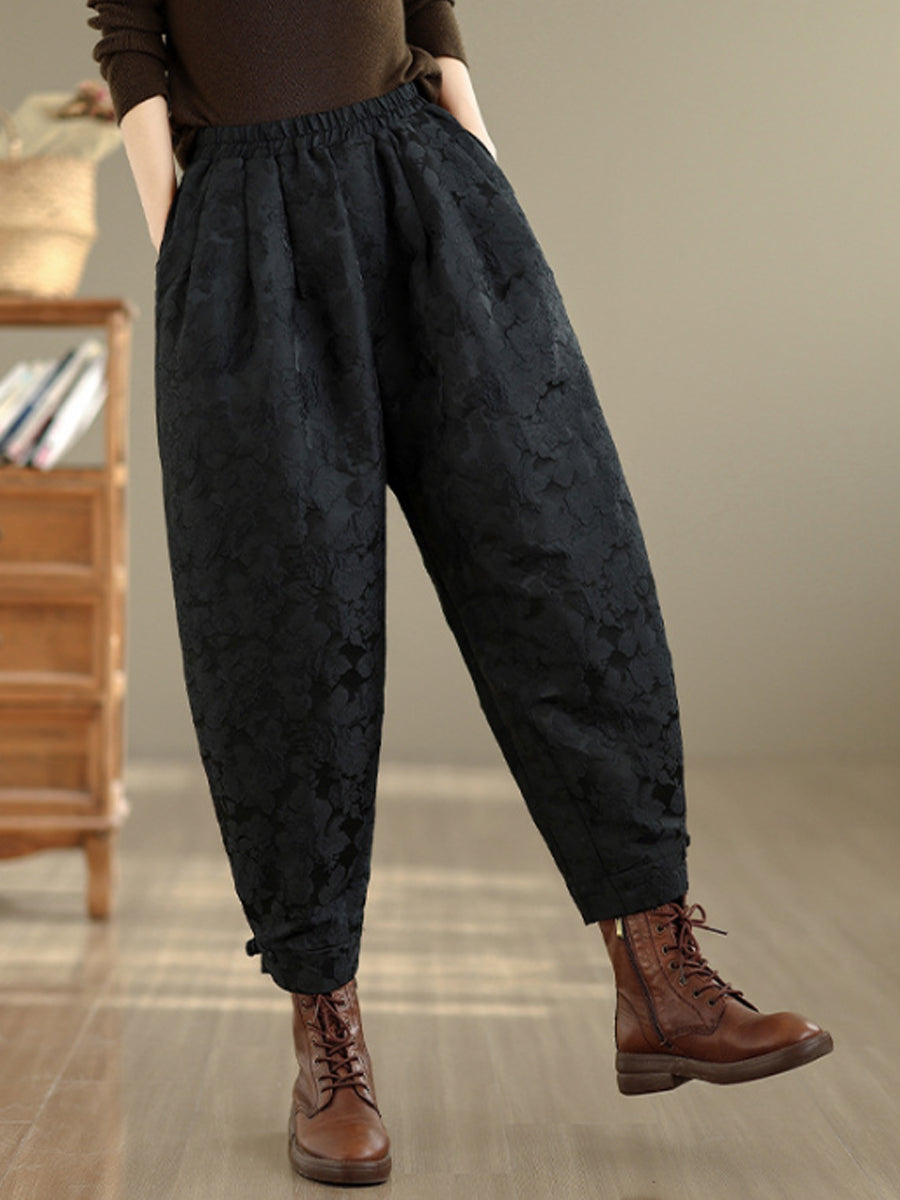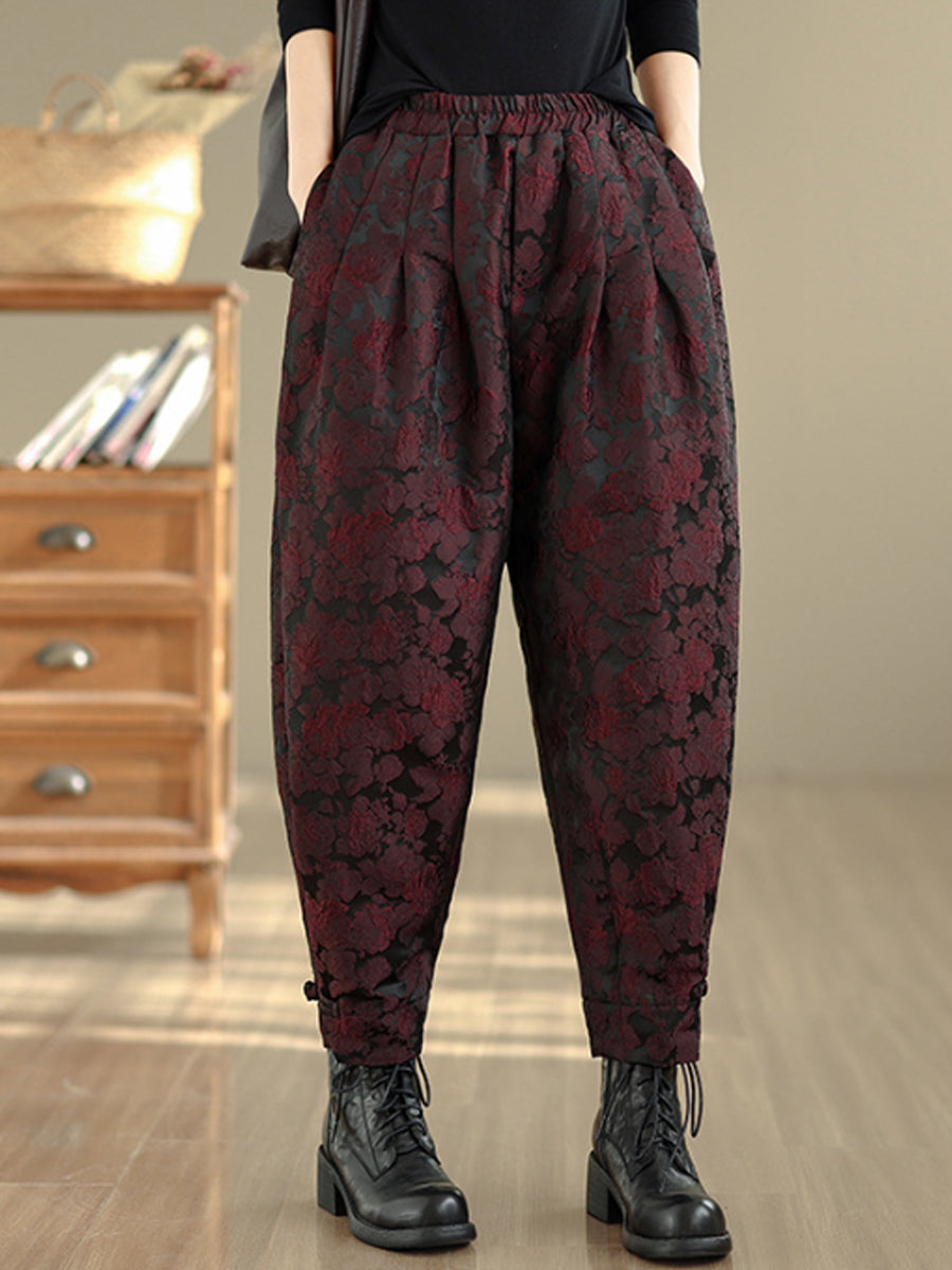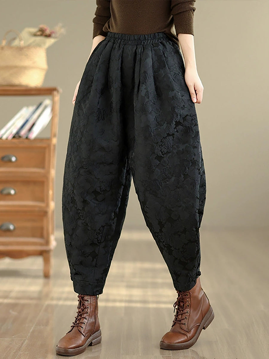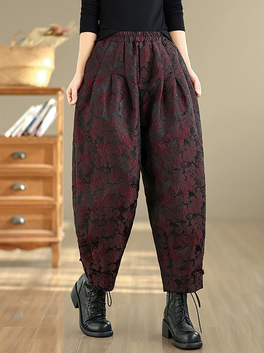 Vetrarblóma Jacquard flísfóðruð Harem buxur fyrir konur
