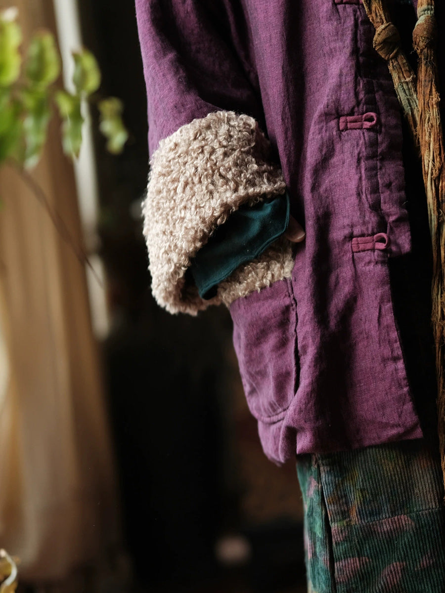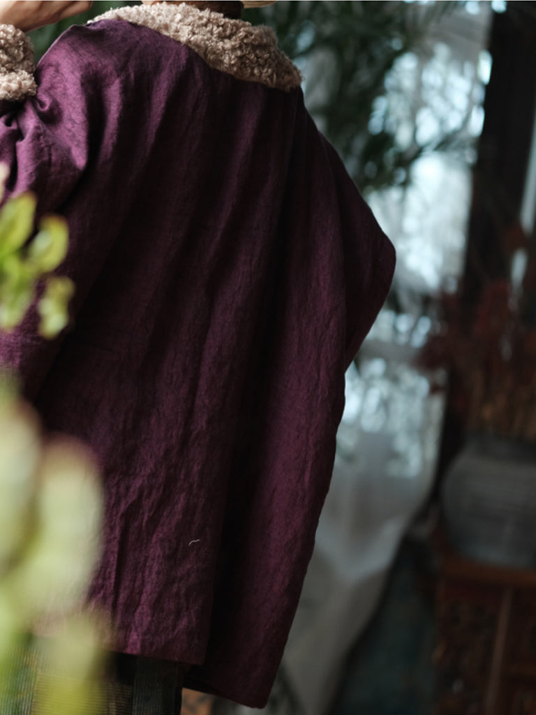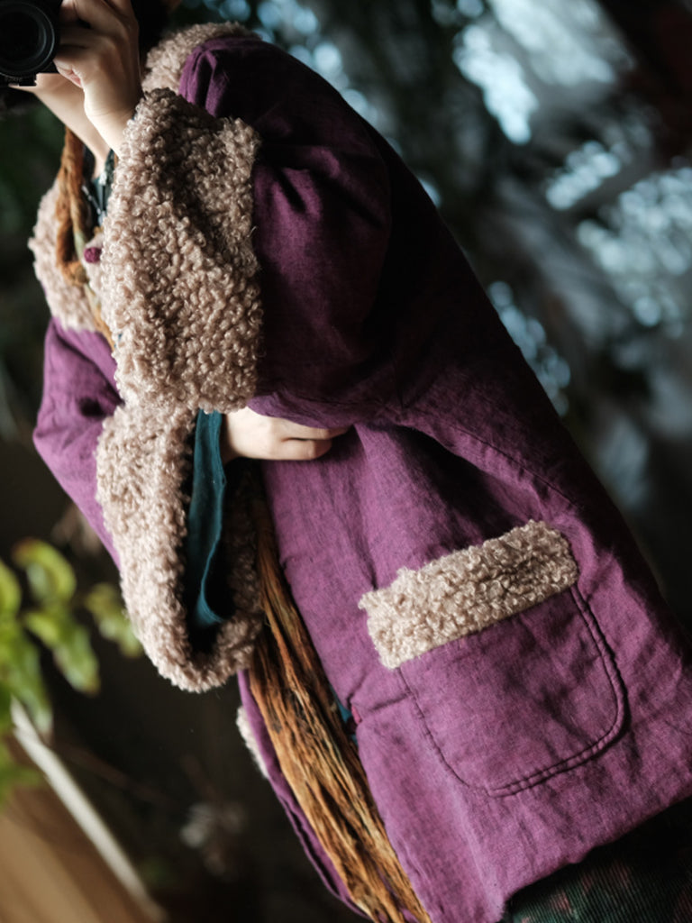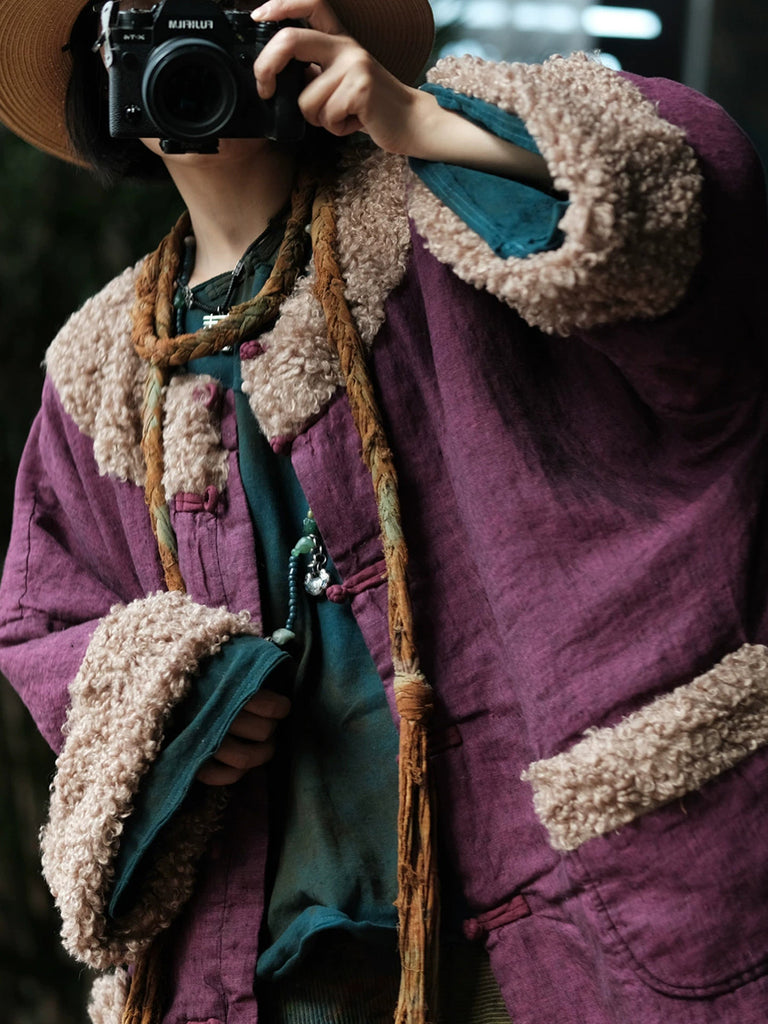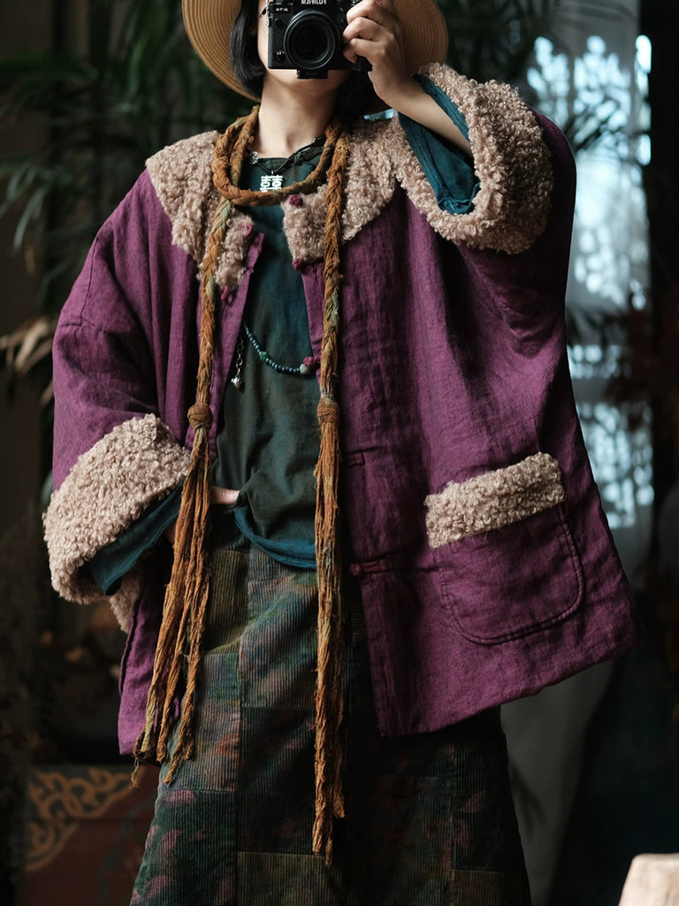 Þessi vetrarkápa er úr úrvals bómull og er innblásin af vintage-stíl. Hún er með heillandi blómamynstri sem fangar retro-glæsileika. Afslappaður kragi með O-hálsmáli og áberandi raglan-ermar veita þægilega og fallega þekju á kaldari mánuðum. Flísböndin bæta við áferðardýpt og ekta vintage-karakter. Langar ermar tryggja hlýju á haust- og vetrarklæðnaði, á meðan vandlega hönnuð sniðmátið brúar klassískan og nútímalegan stíl.