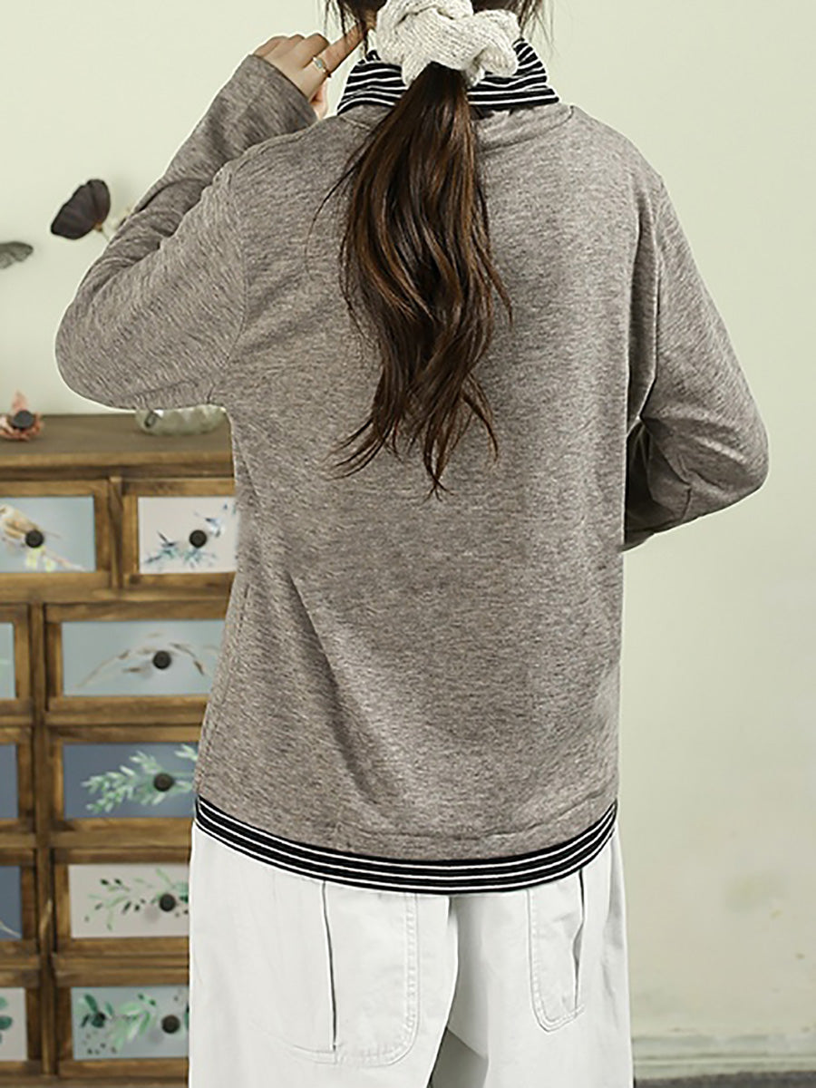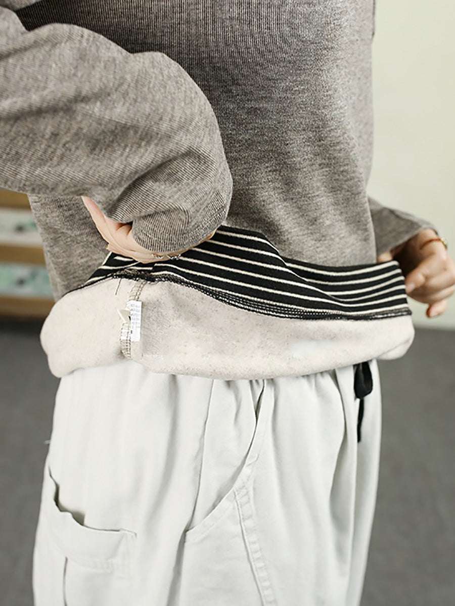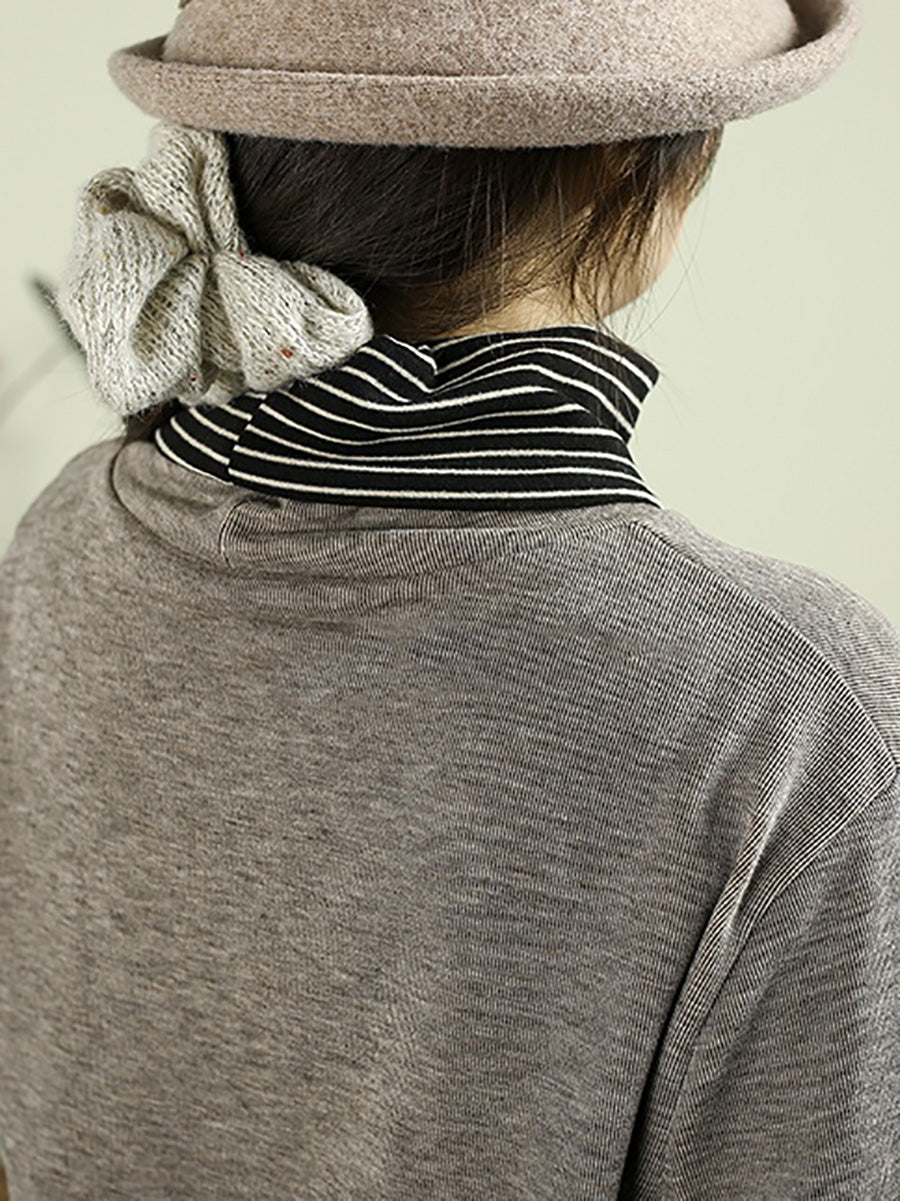 Vetrarröndótt rúllukragablúsa fyrir konur með flísfóðri