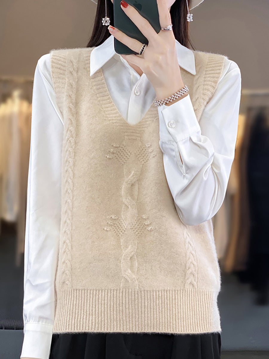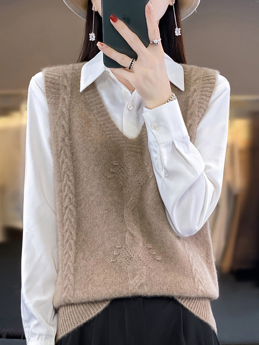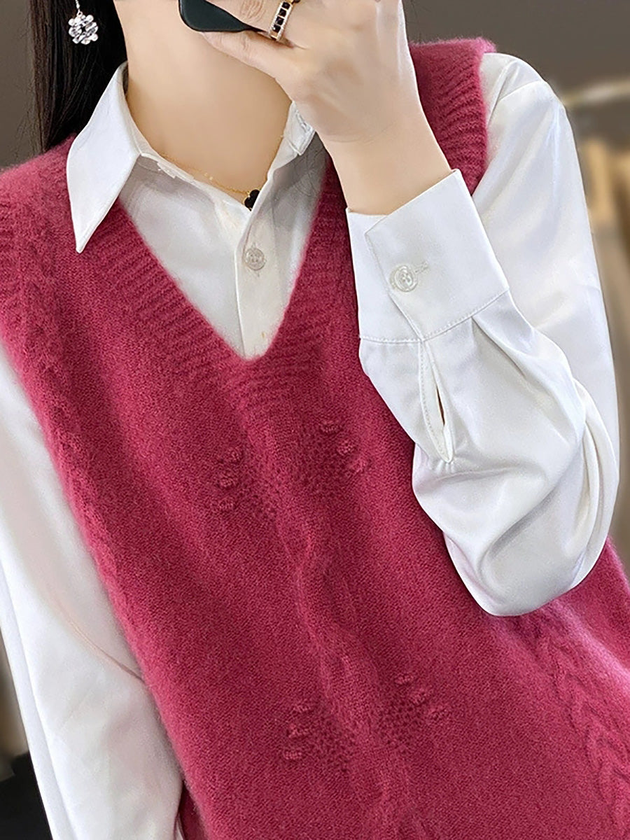Haustlistrænt Jacquard V-háls prjónað vesti fyrir konur