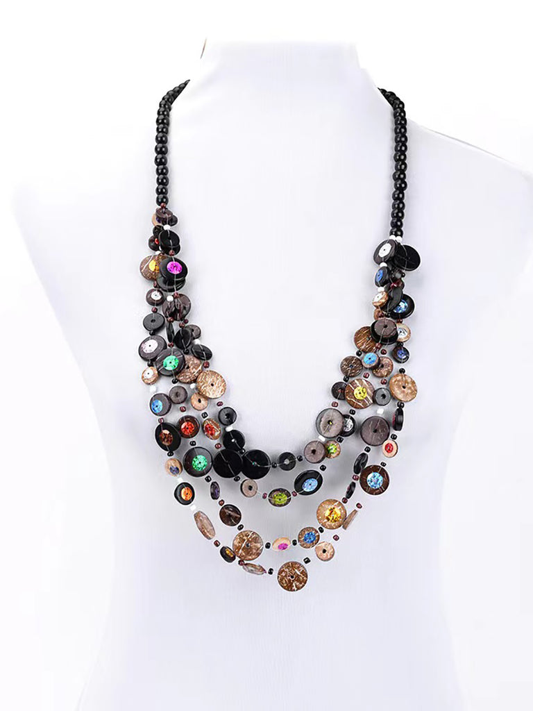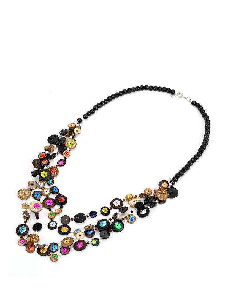Bohemia Wooden Button Bead Multilayer Hálsmen