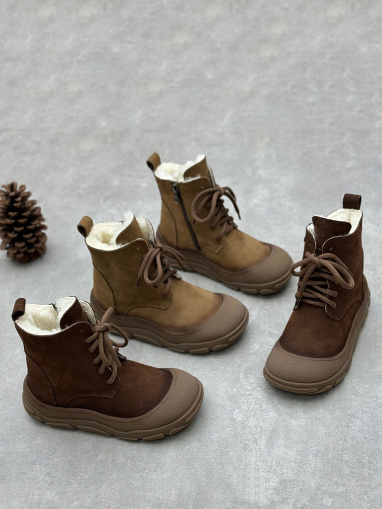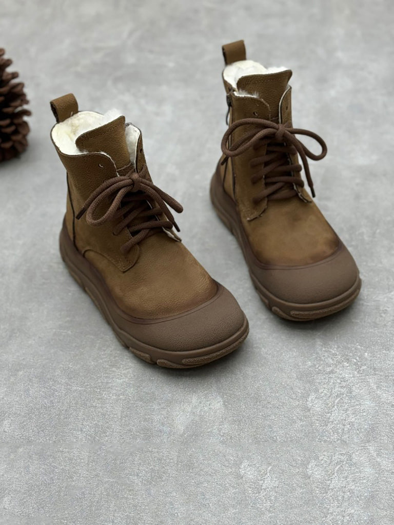 Konur haust ósvikið leður Flat Casual Martin stígvél