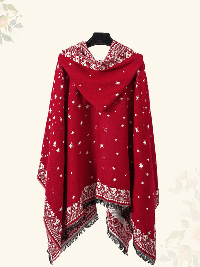 Kvenkyns þjóðernisstjörnuprentun hettu trefilsjal