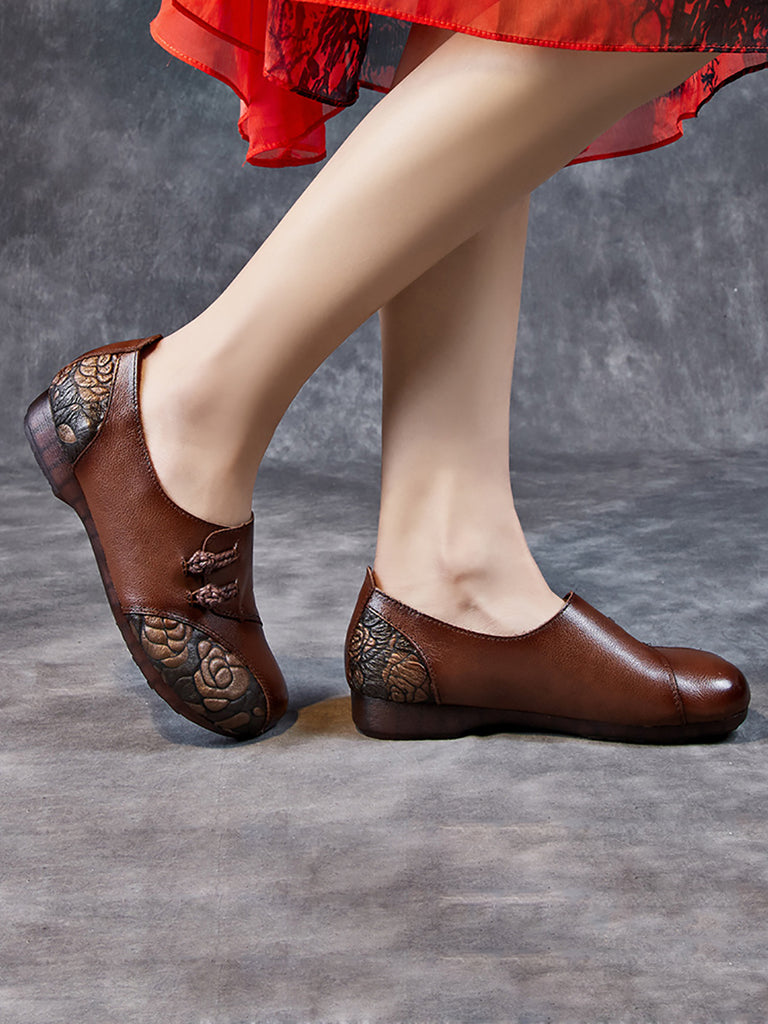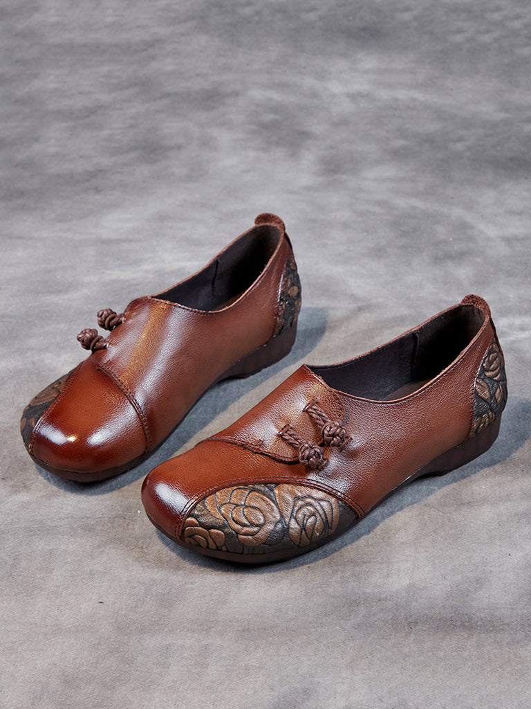 Kvenkyns vor þjóðernisblóm leðursplæst flatskór