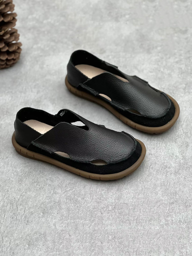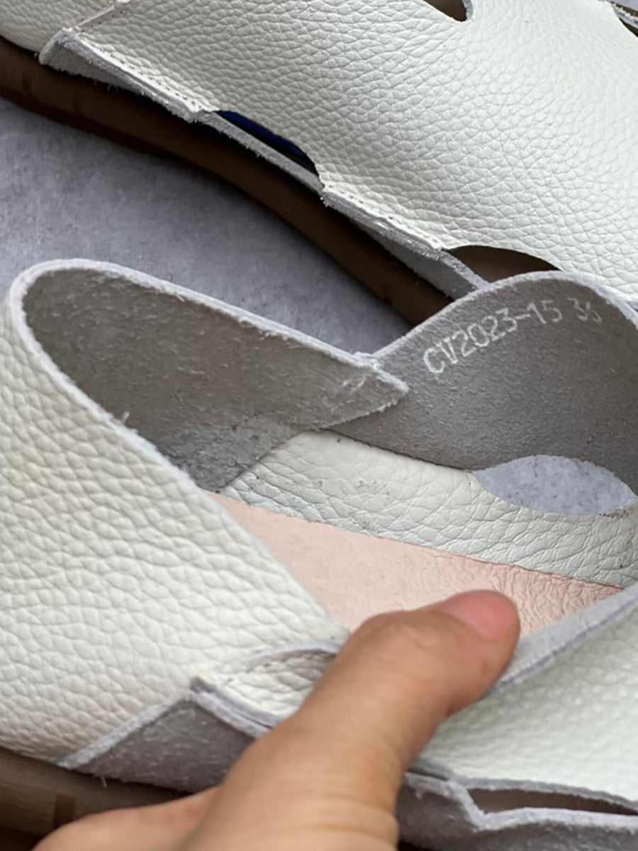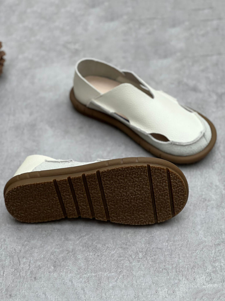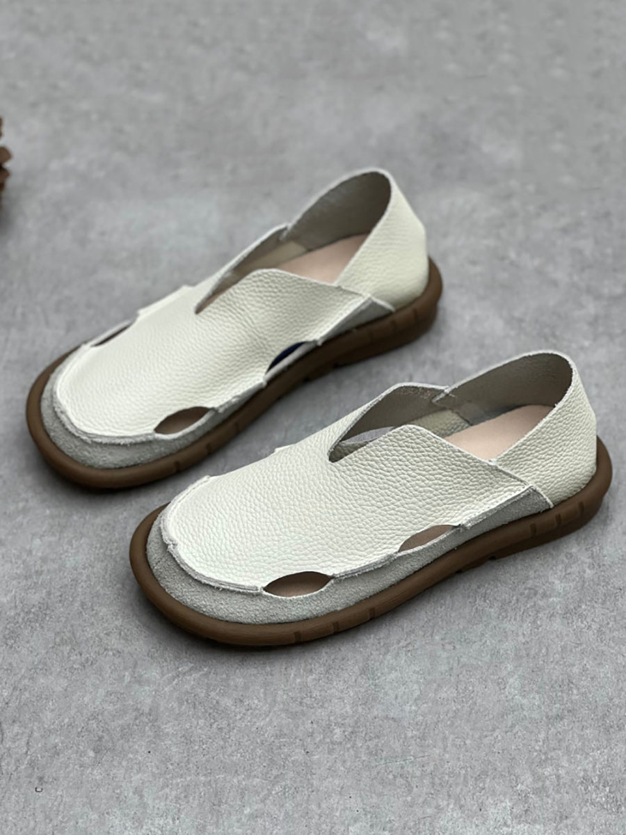 Kvenna Retro Sumar Solid Leður Hollow Out Flat Skór
