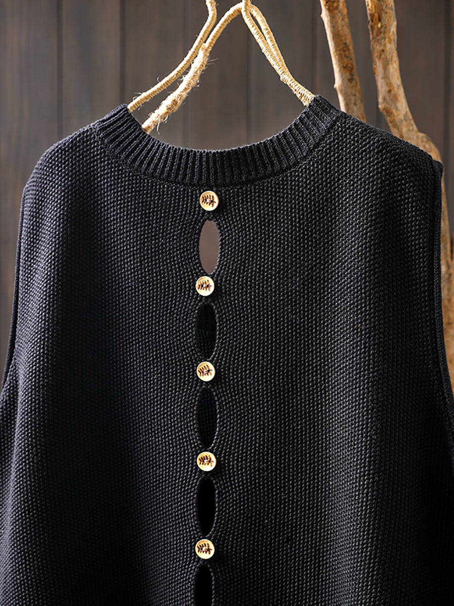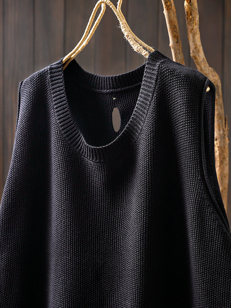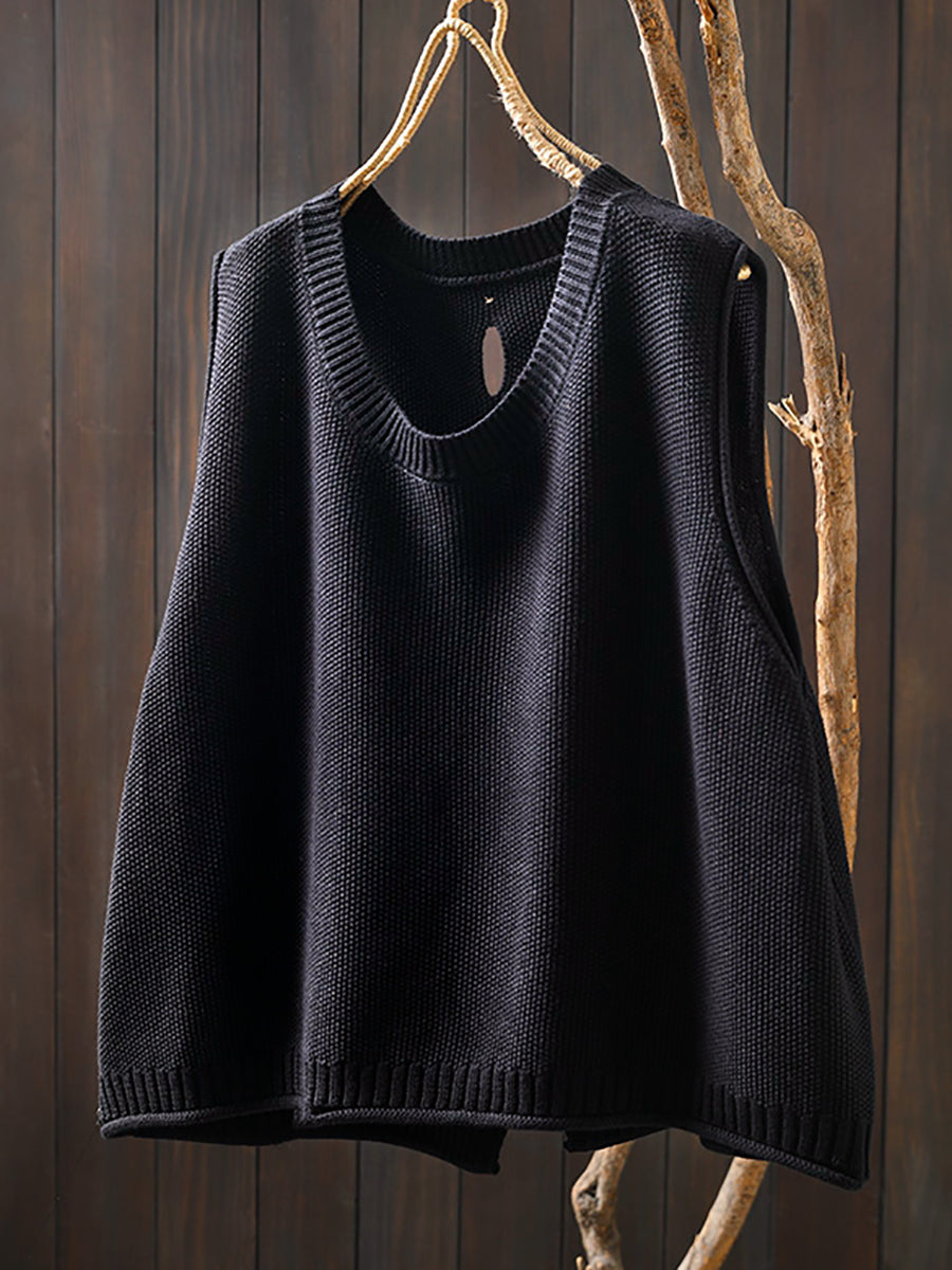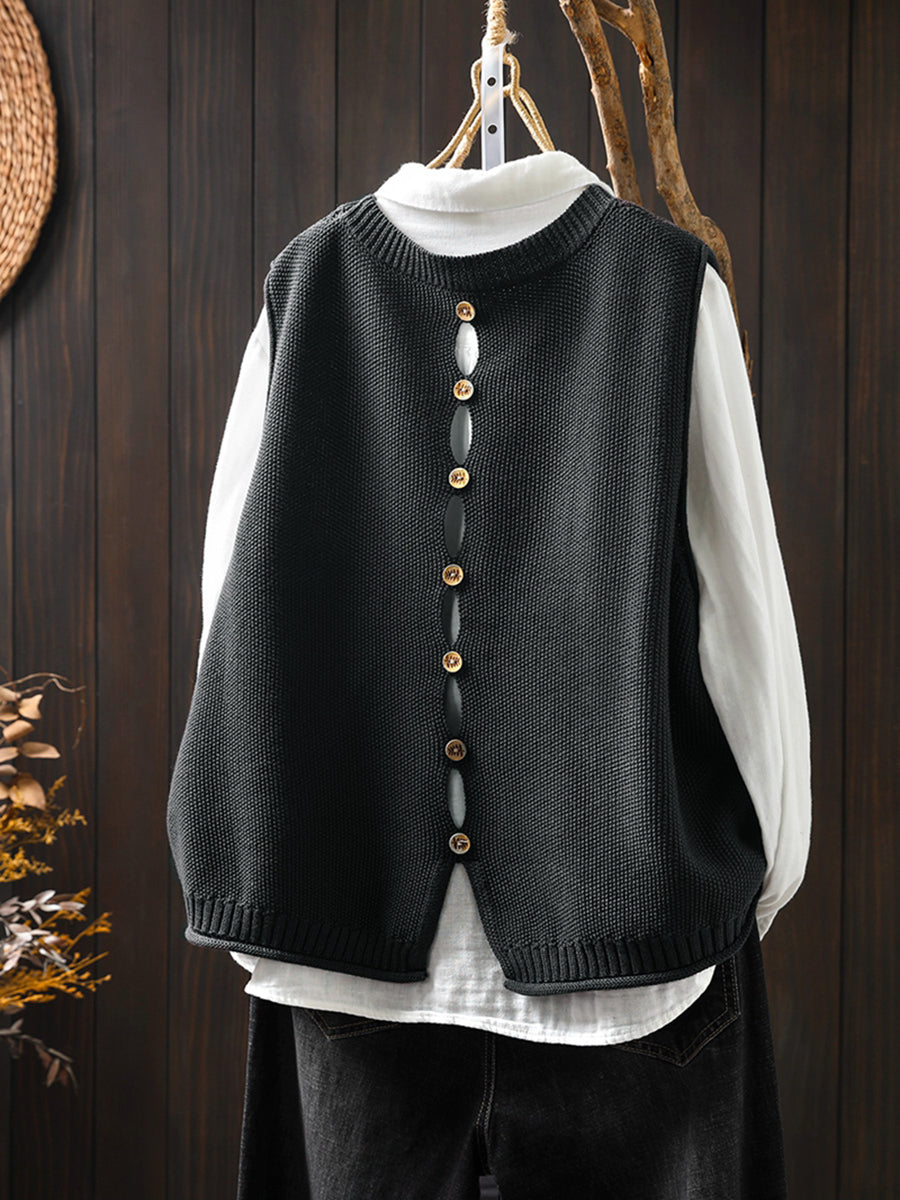 Þetta vesti státar af traustu mynstri og klassískri O-háls hönnun. Með ermalausum stíl og retro tilfinningu er þetta fjölhæfa stykki fullkomið fyrir kaldari árstíðir hausts og vetrar.