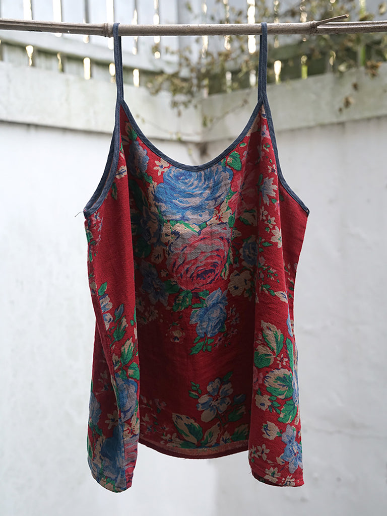 Plús stærð kvenna þjóðernisblómaprentun Colorblock sumar bómullarvesti