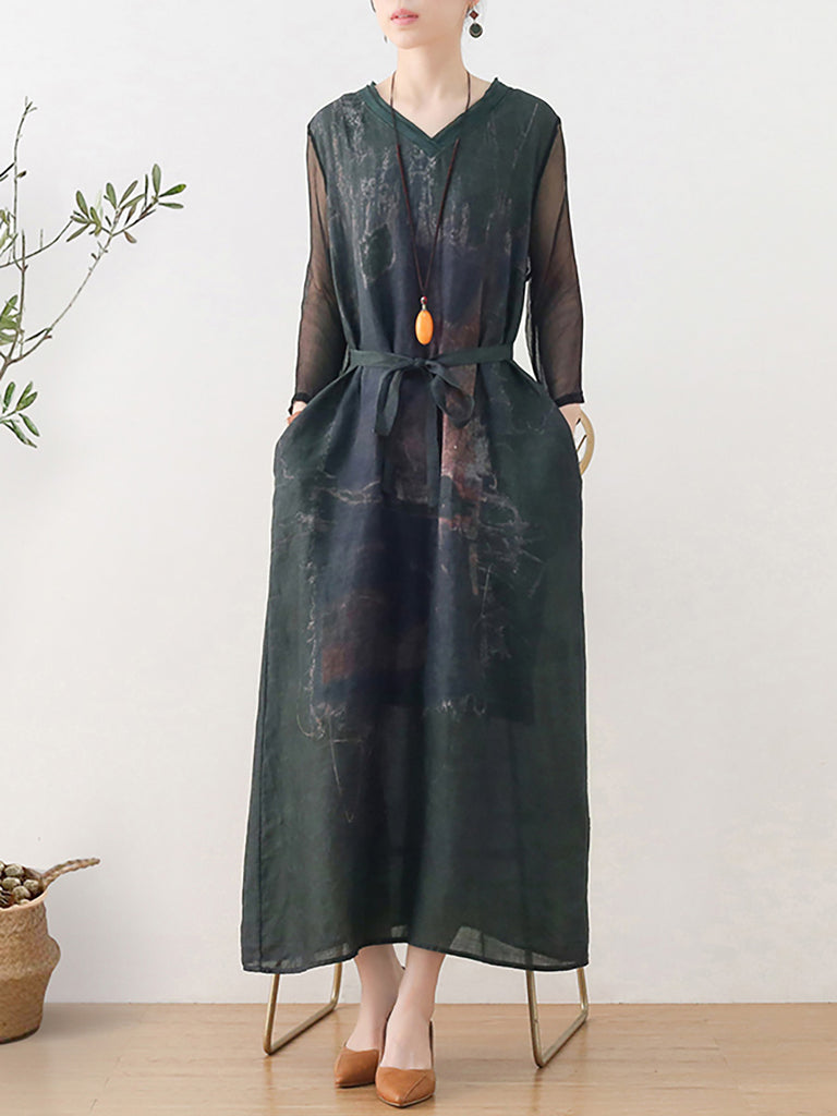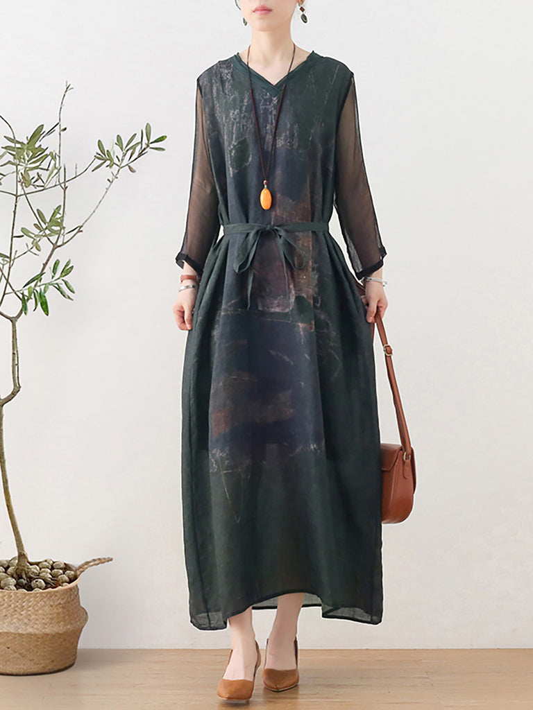 Plús stærð laus sumar bútasaumur Vintage kjóll