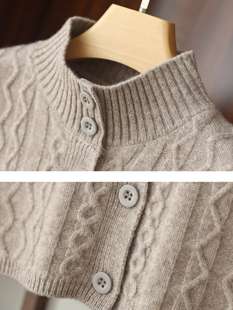Konur Artsy Solid Twrist Knit Wool Soft Stand Collar Sjal