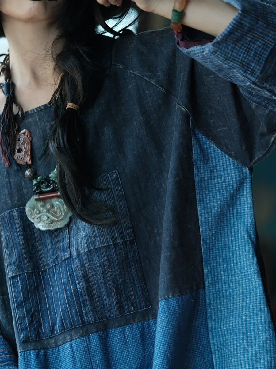 Haustkjóll fyrir konur með O-hálsmáli úr bómullarefni