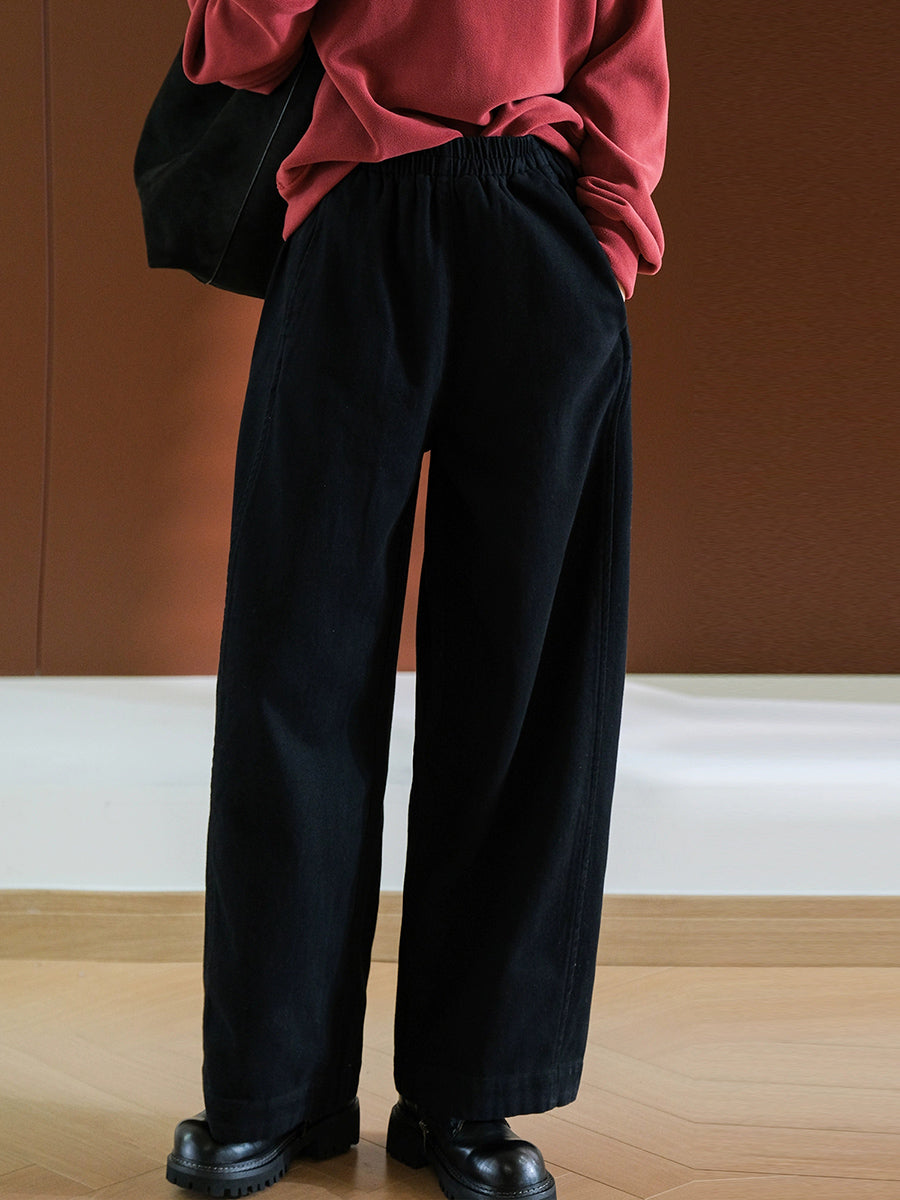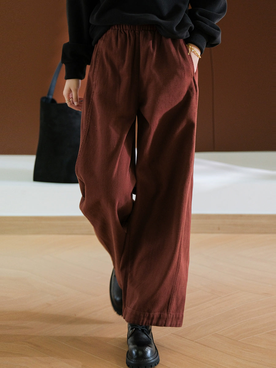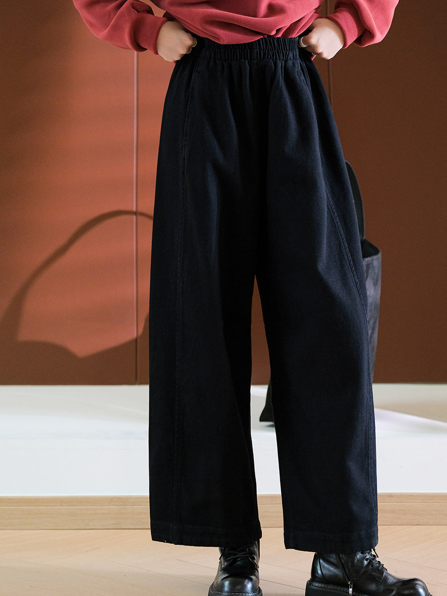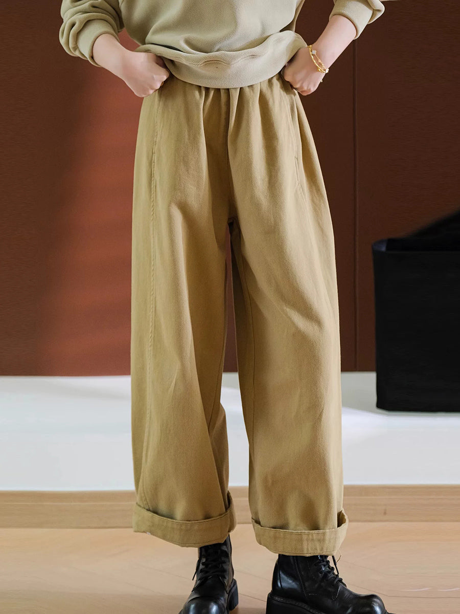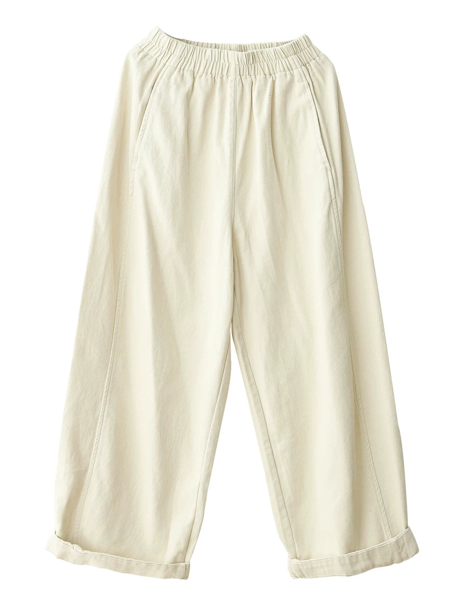 Víðbuxur fyrir konur, úr hreinum lit, 100% bómull
