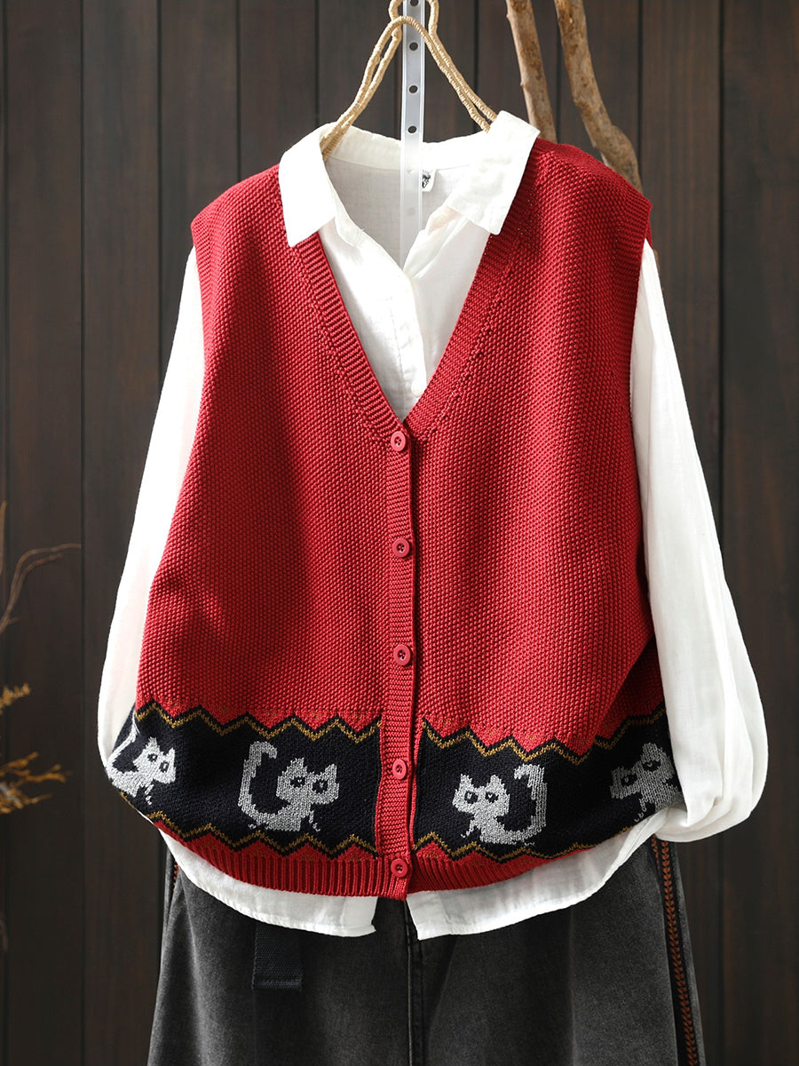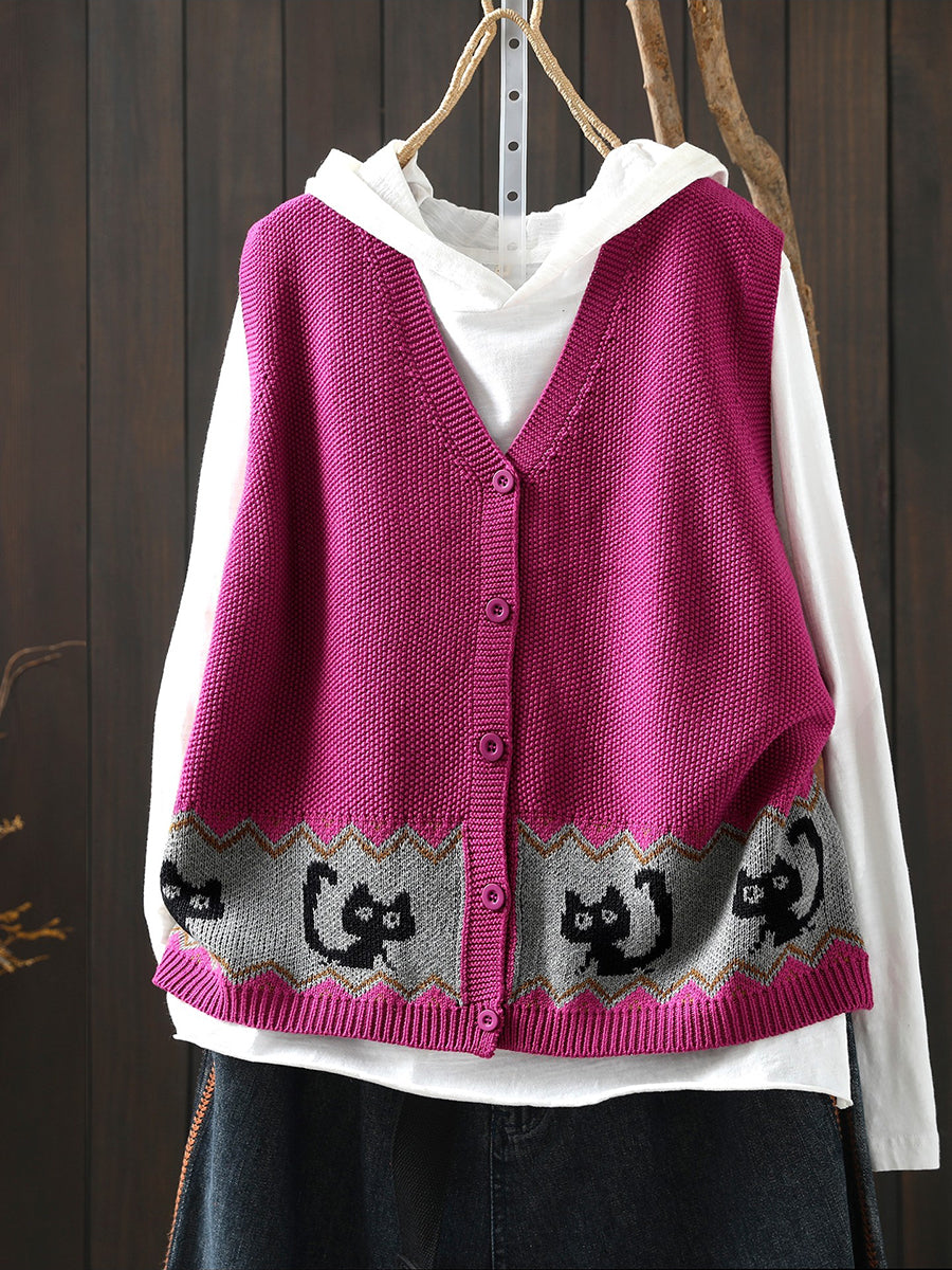 Kvenna vor Listrænn Köttur Prjónaður V-hálsvesti