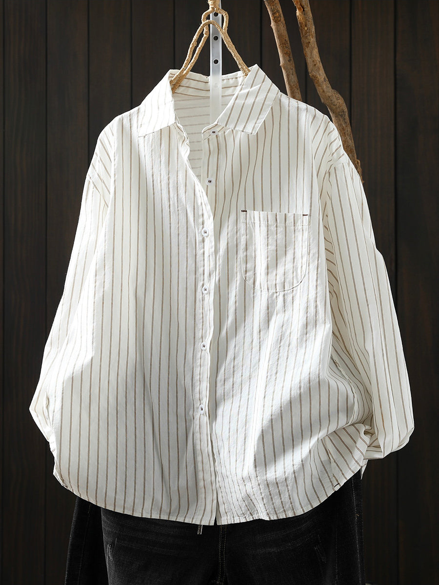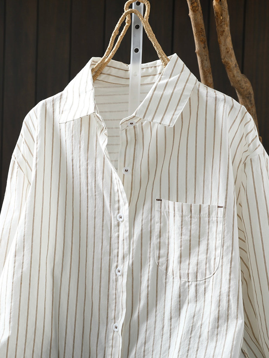 Vorskyrta fyrir konur, listræn röndótt, 100% bómullar