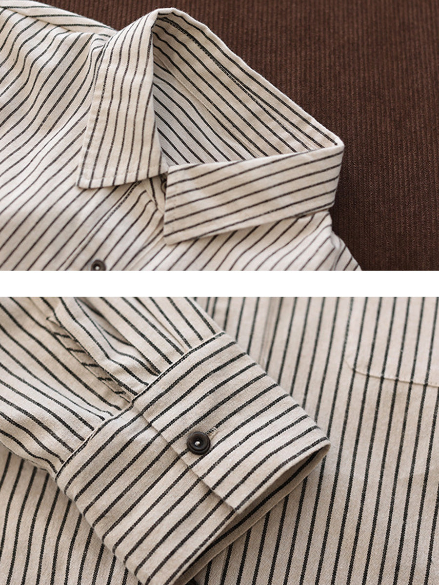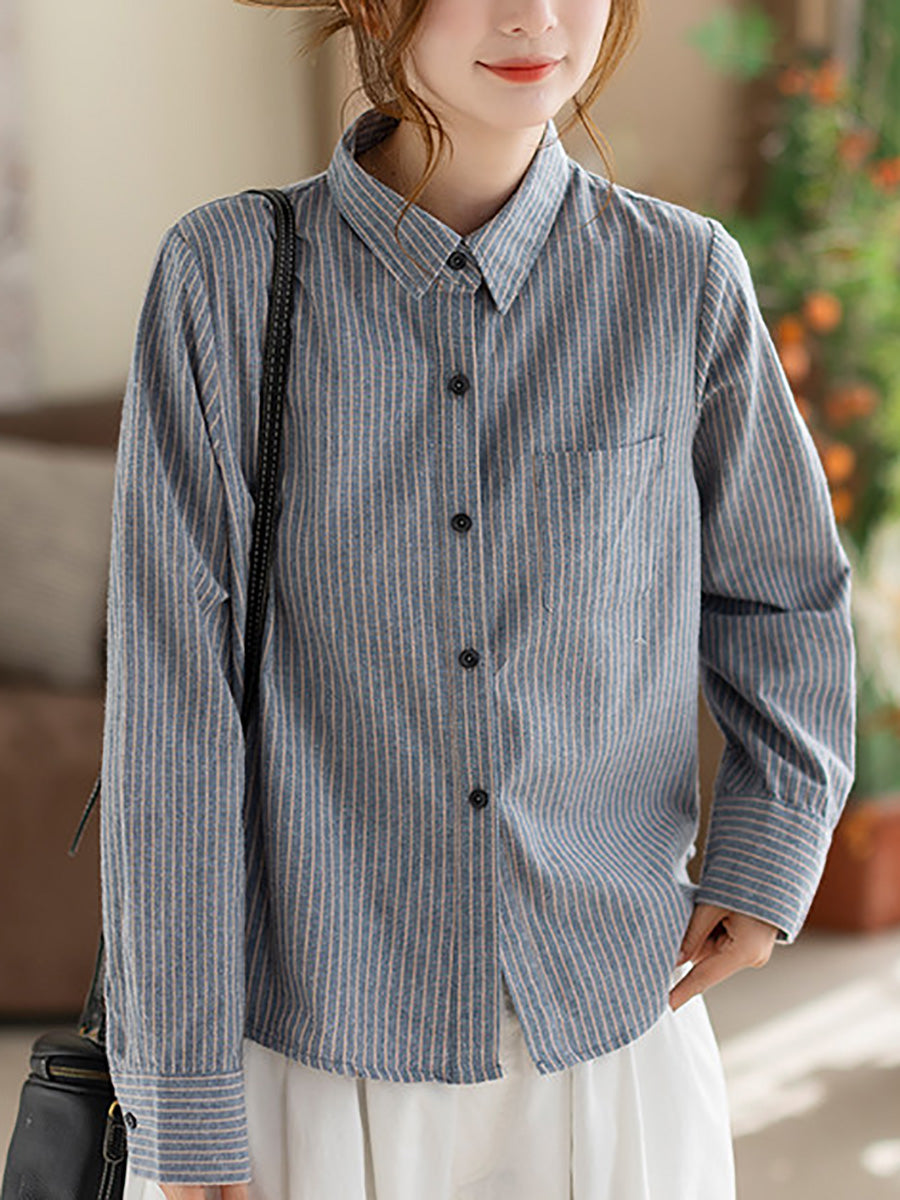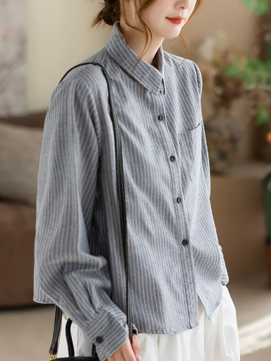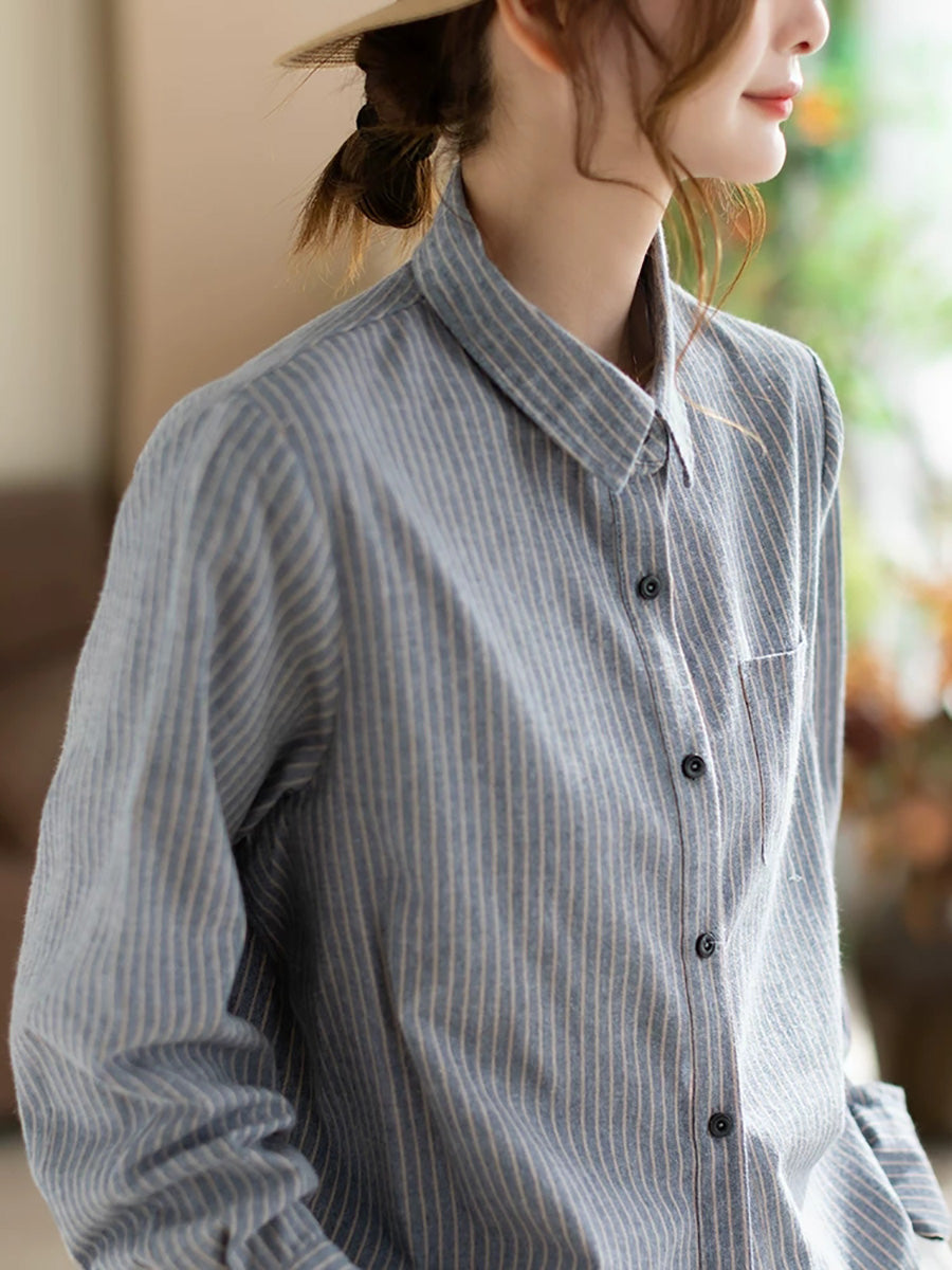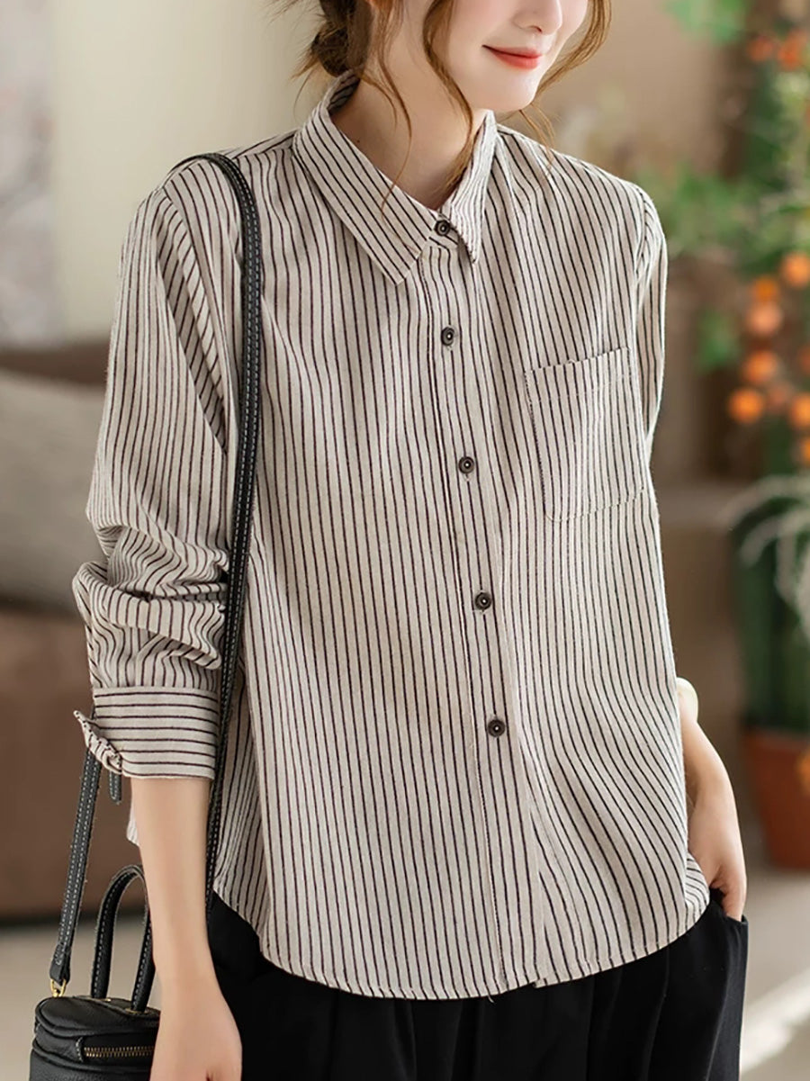 Vorskyrta með röndóttum bómullarmynstri fyrir konur