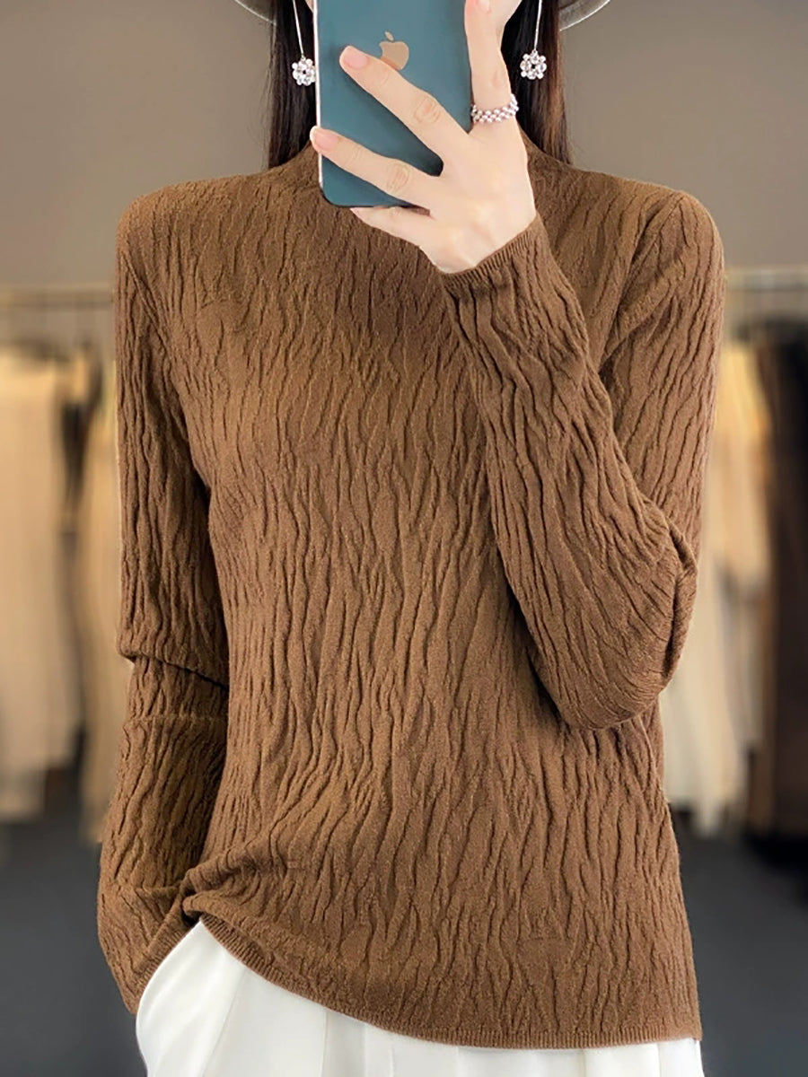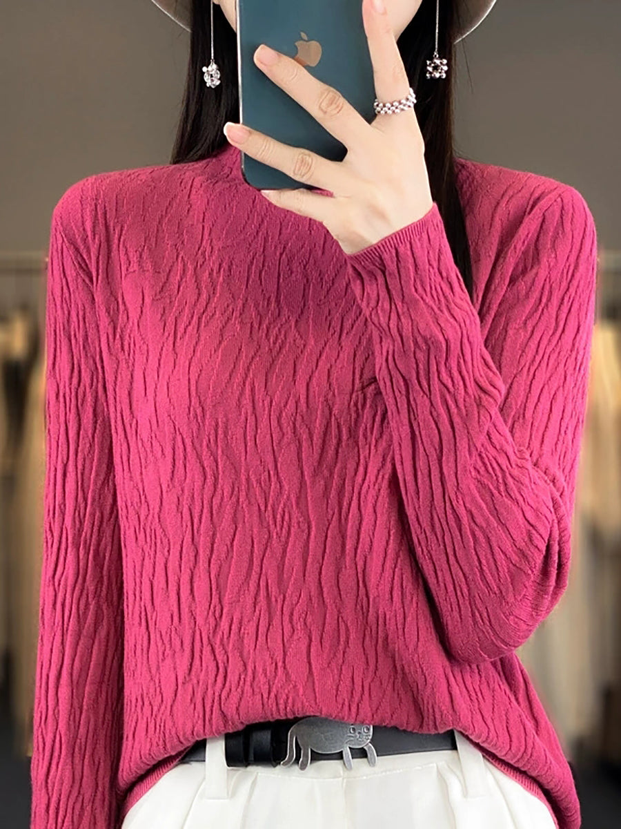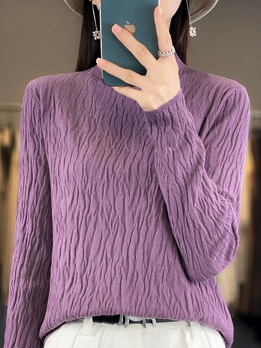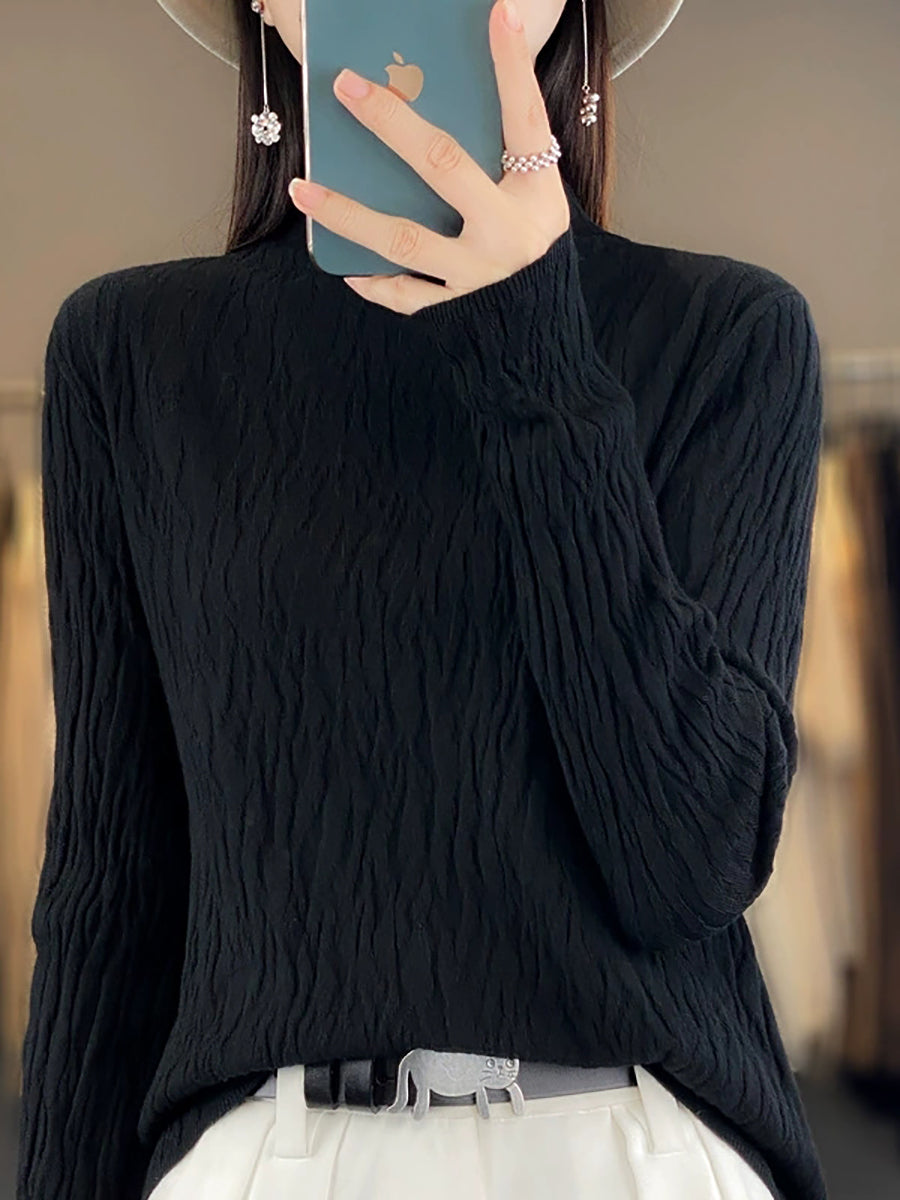 Vorpeysa fyrir konur, frjálsleg í hreinum lit, hálfhálshálspeysa