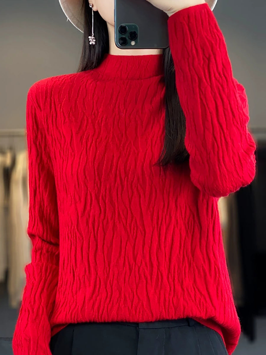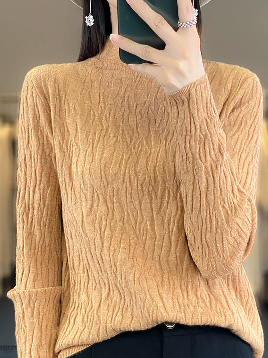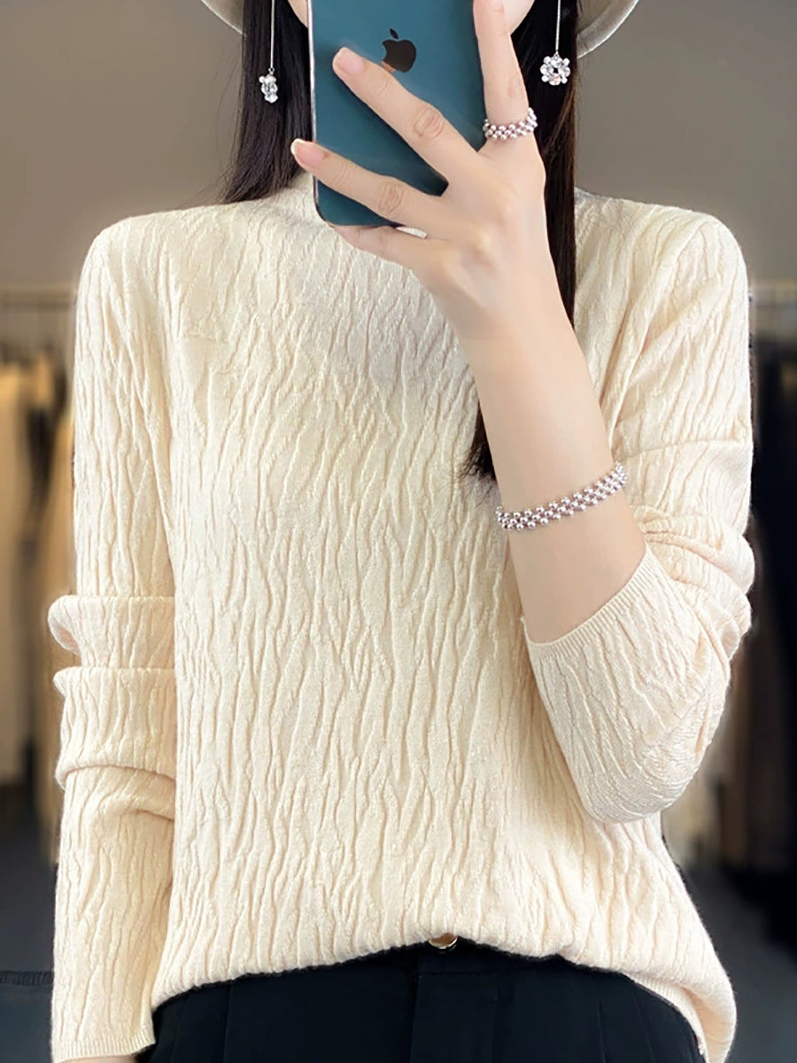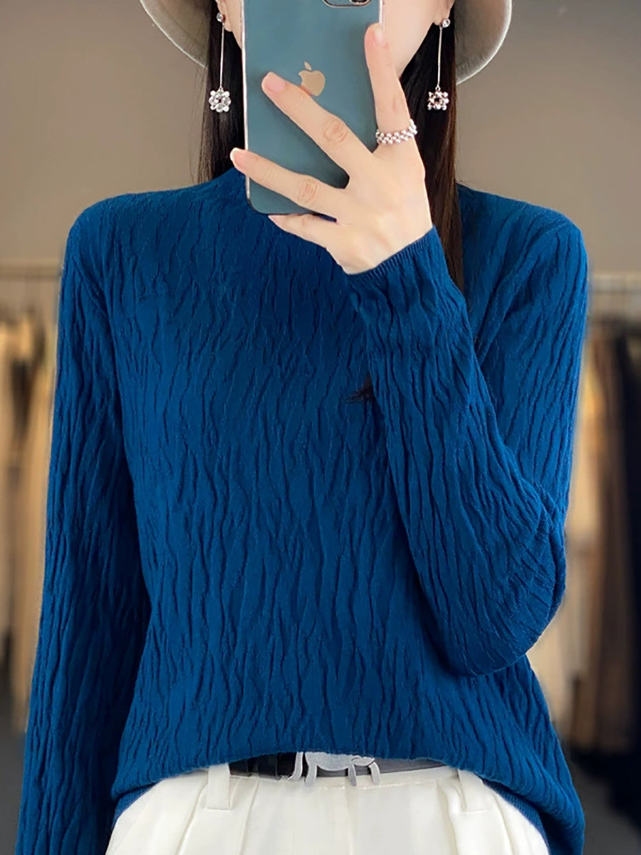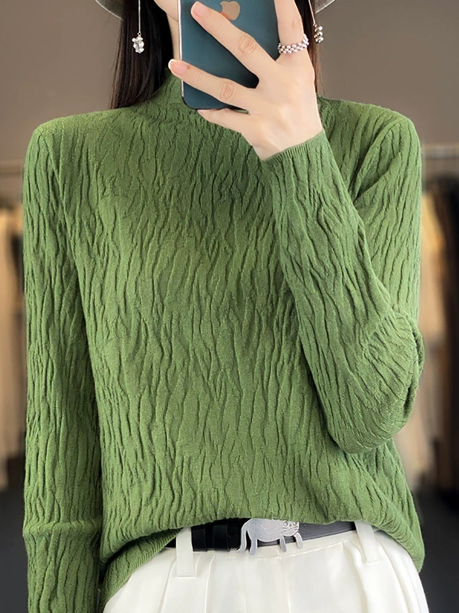 Vorpeysa fyrir konur, frjálsleg í hreinum lit, hálfhálshálspeysa