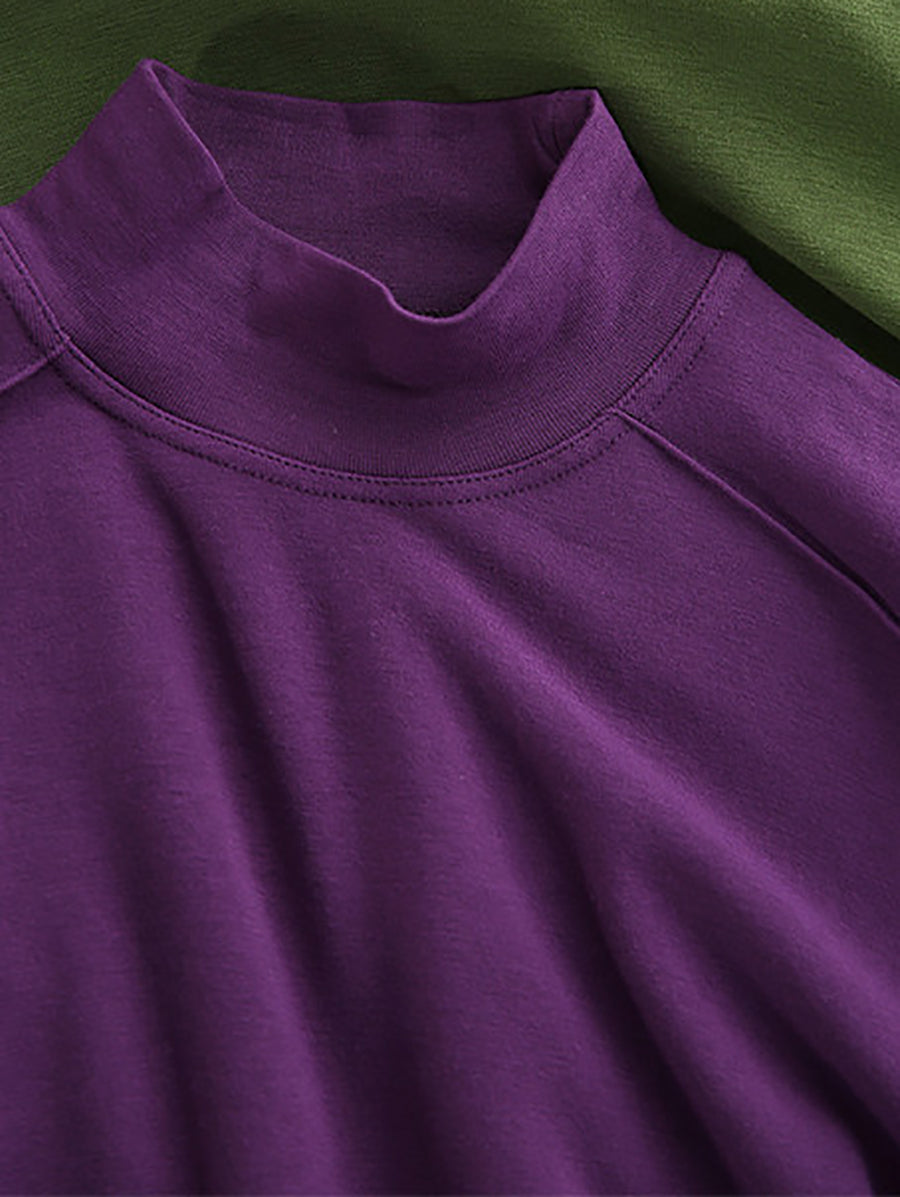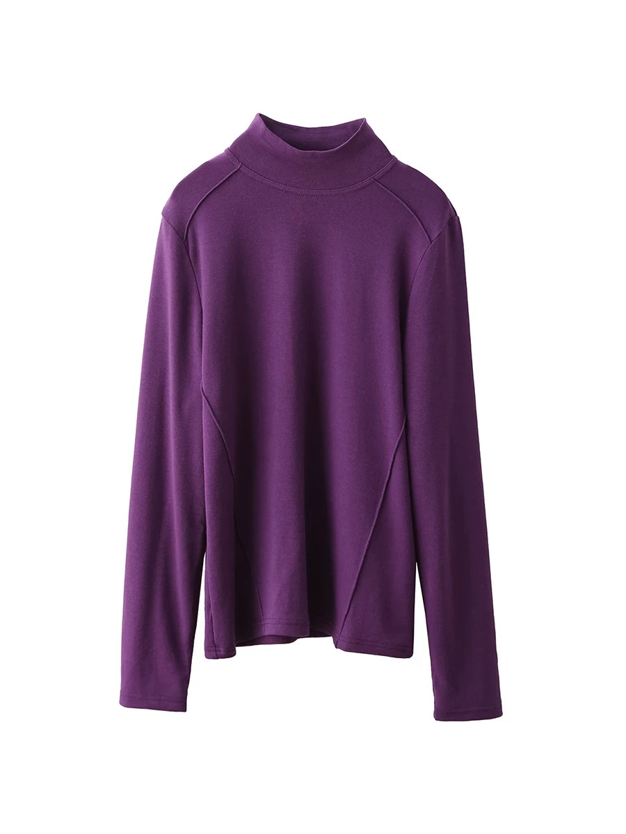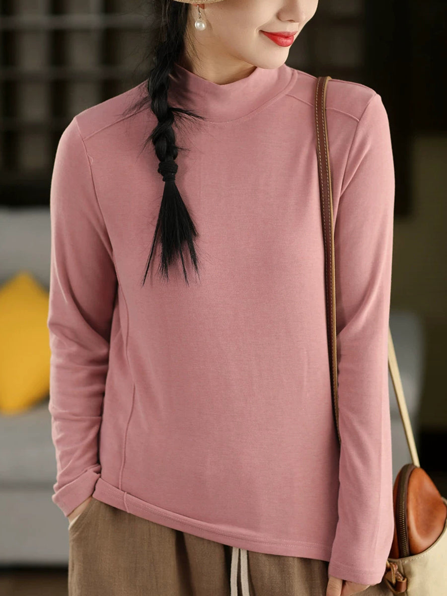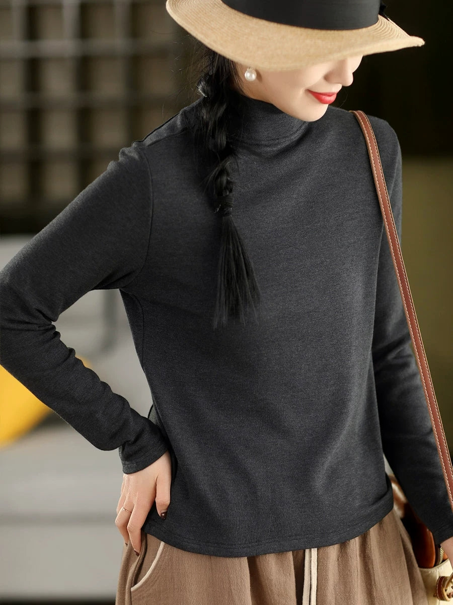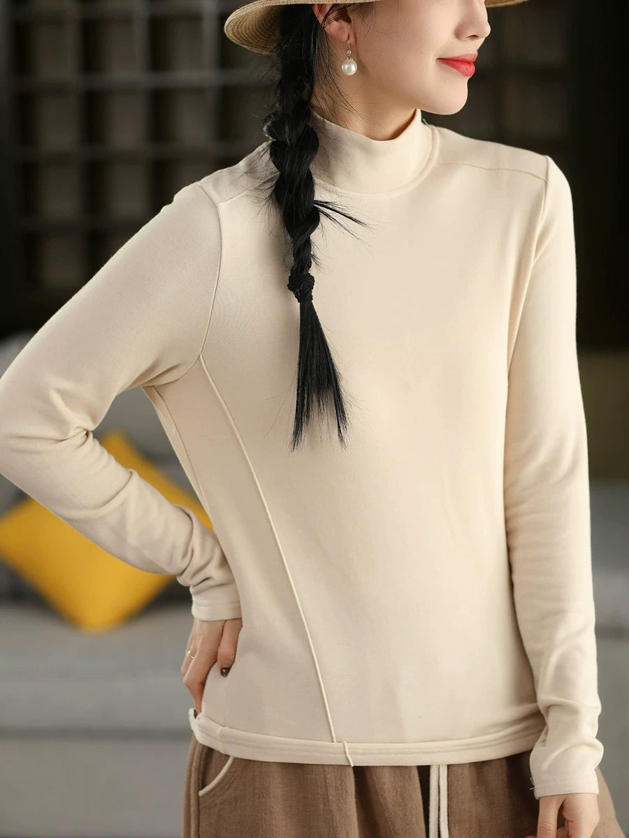 Vorblússa fyrir konur með hálfum hálsmáli, hreinum litum