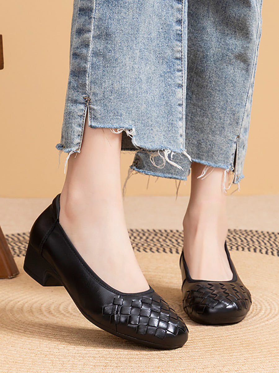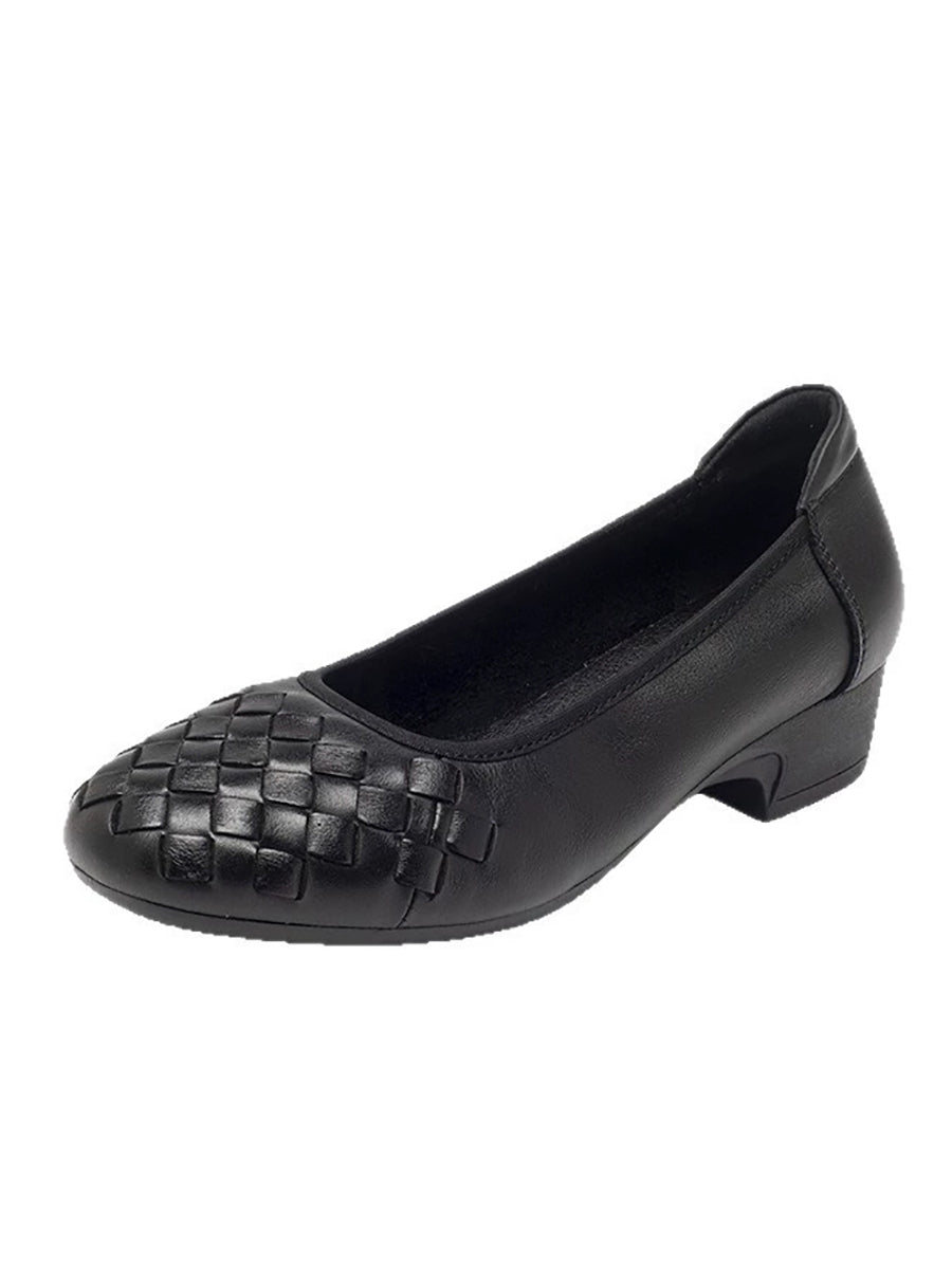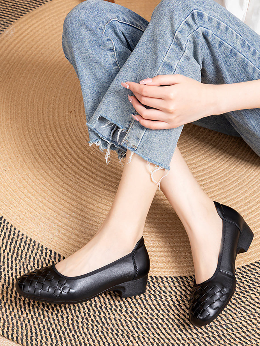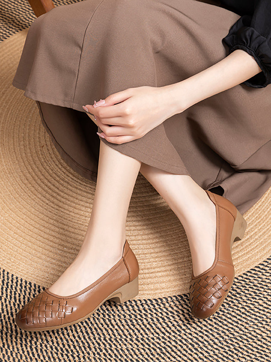 Sumarskór fyrir konur með mjúkum leðurvefjum og miðhælum