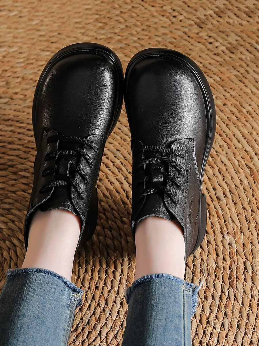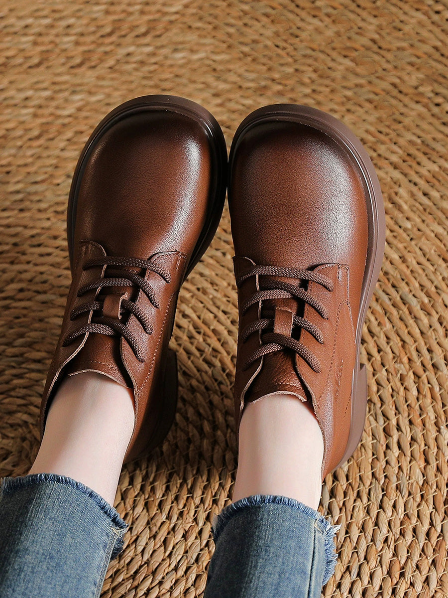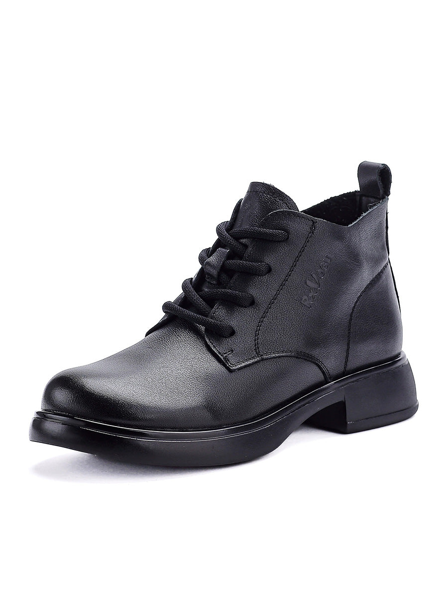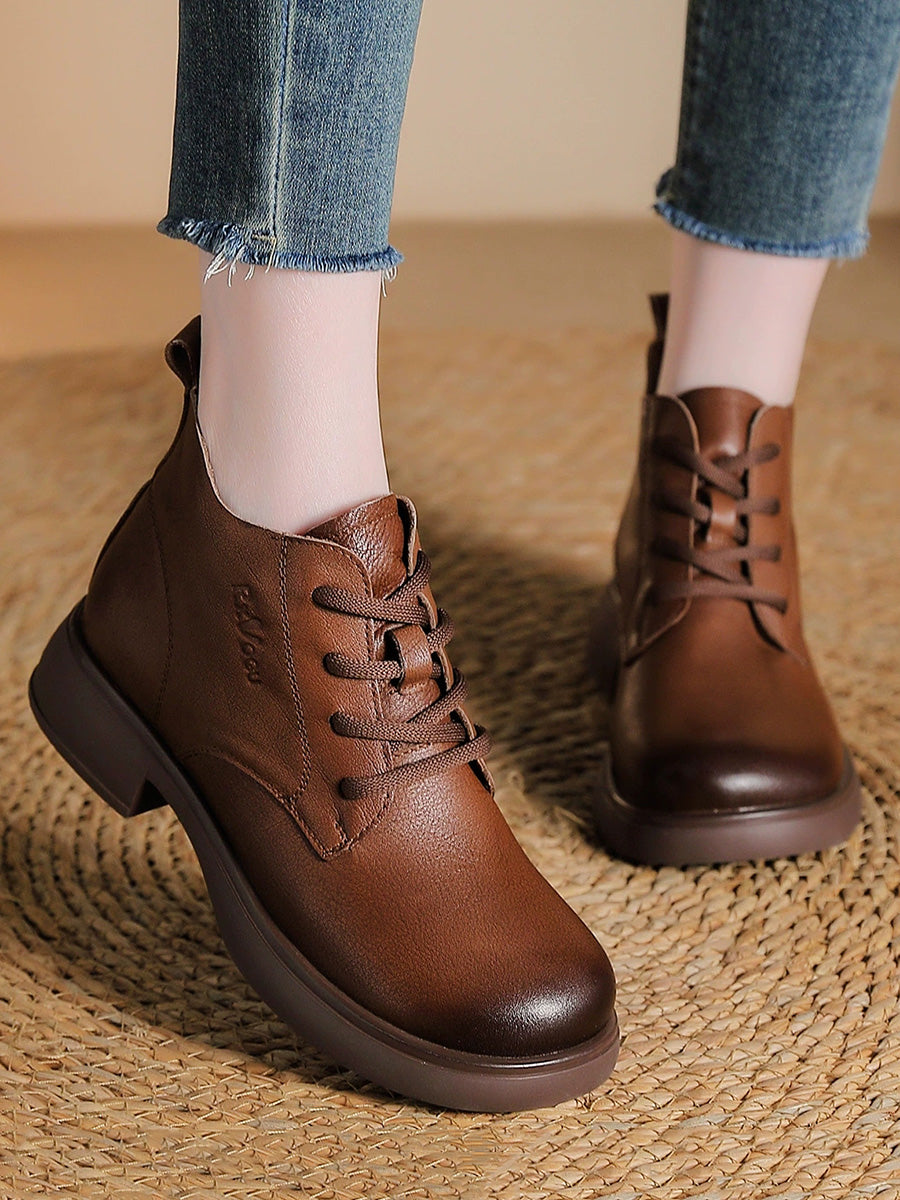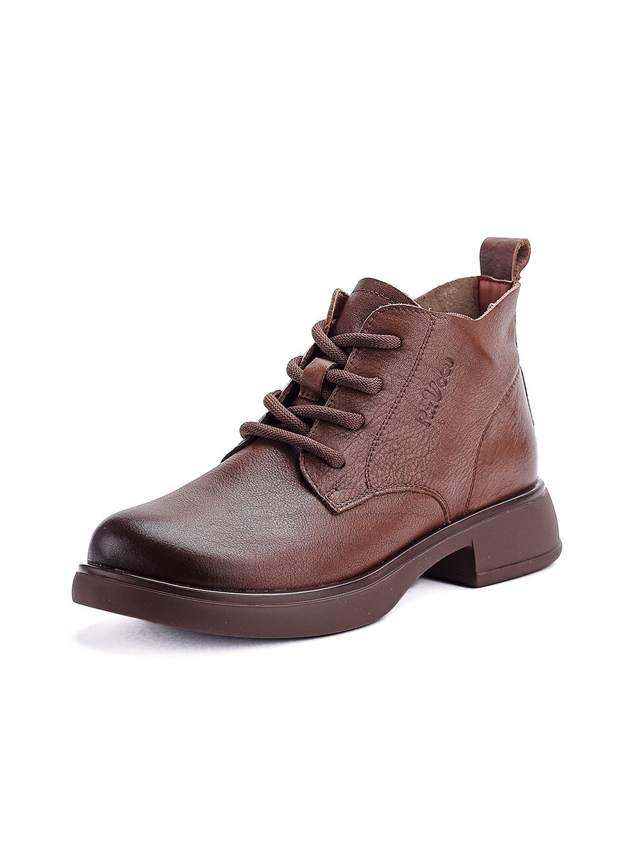 Kvenna Vintage Ósvikinn Leður Lághælaður Ökklastígvél