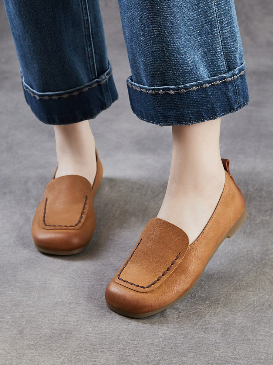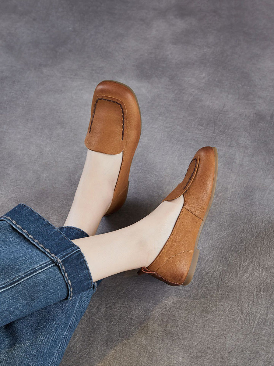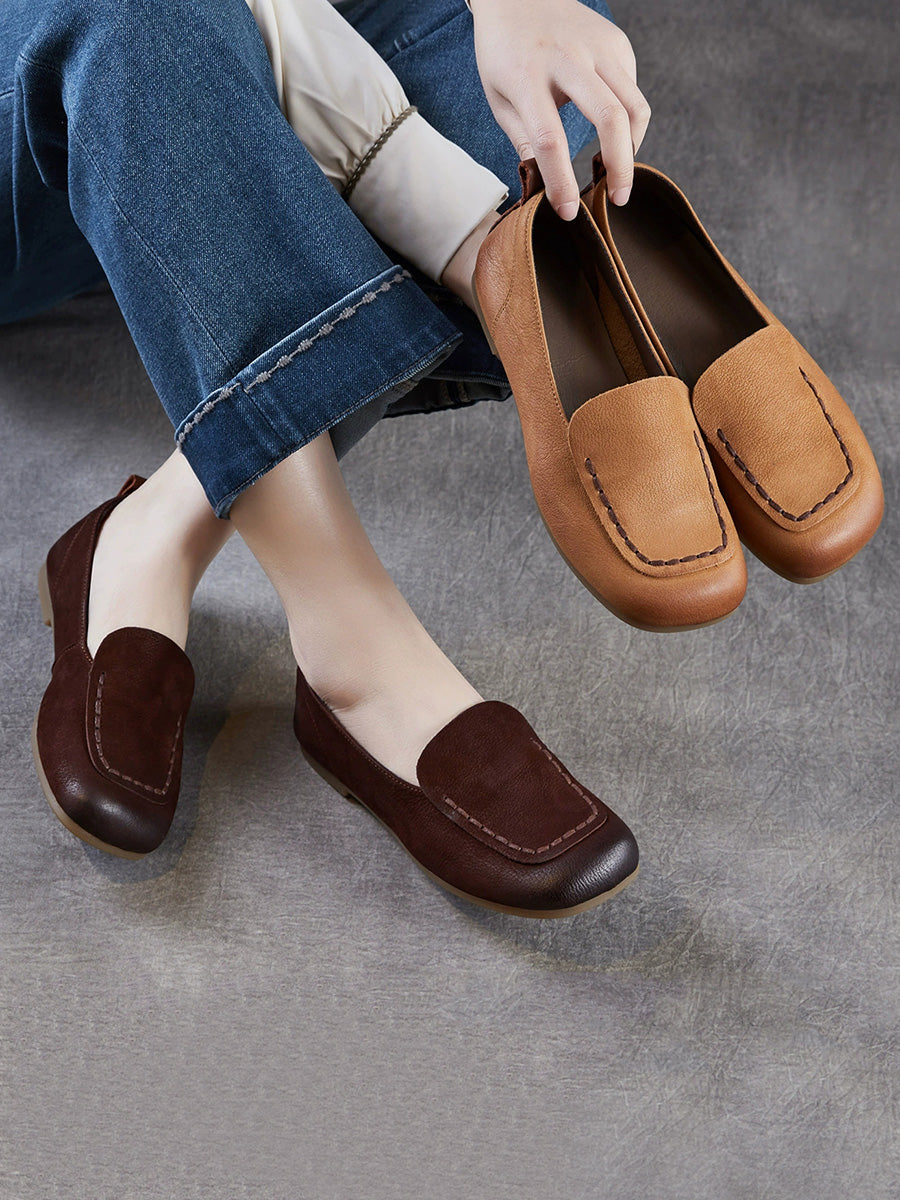 Konur úr vintage leðri með ferkantaðri tá