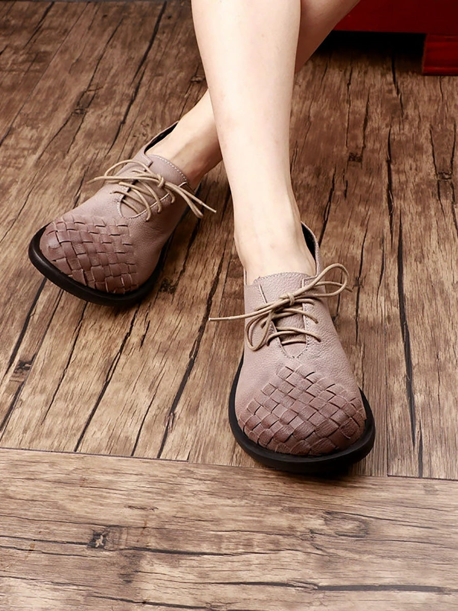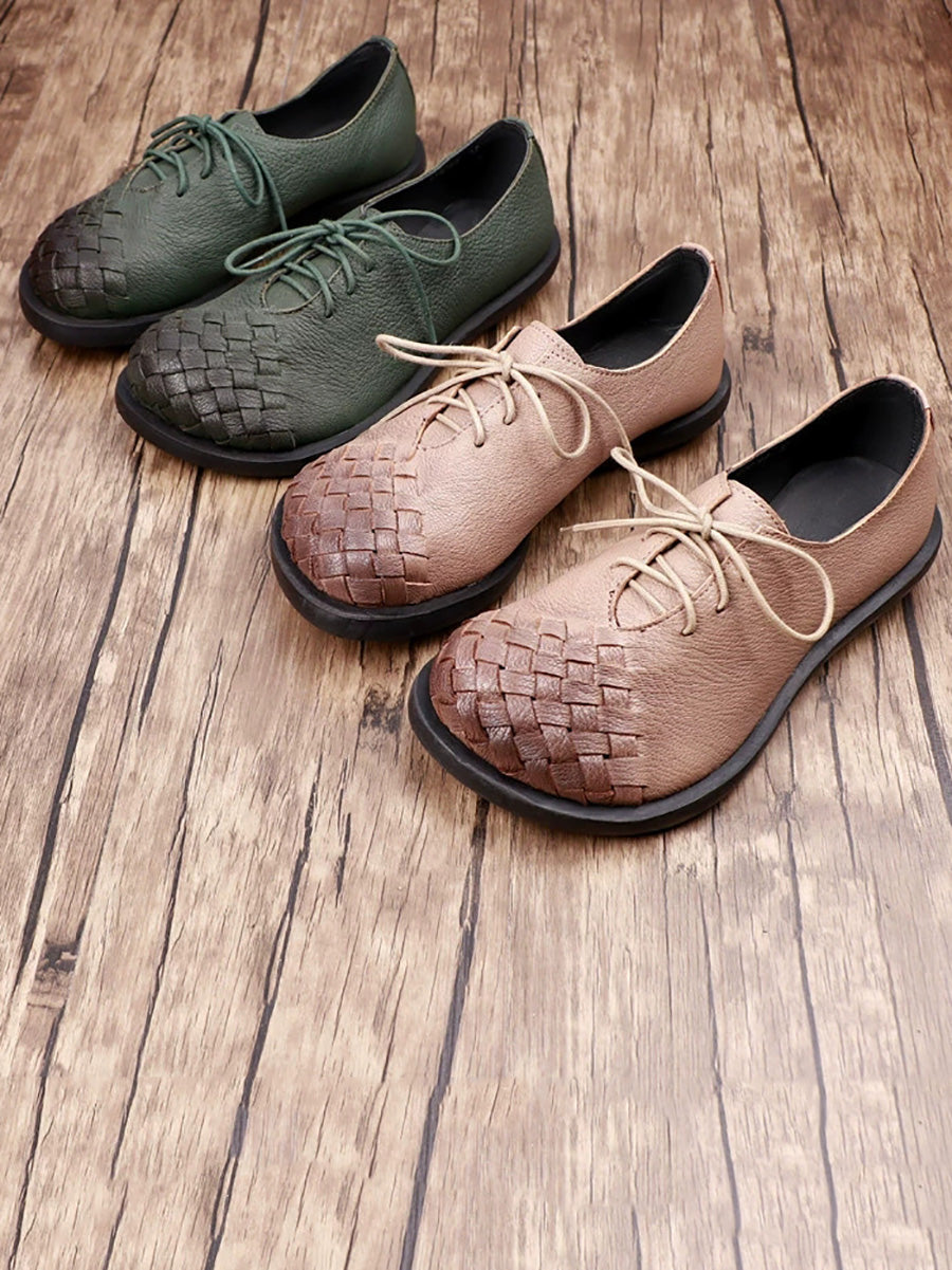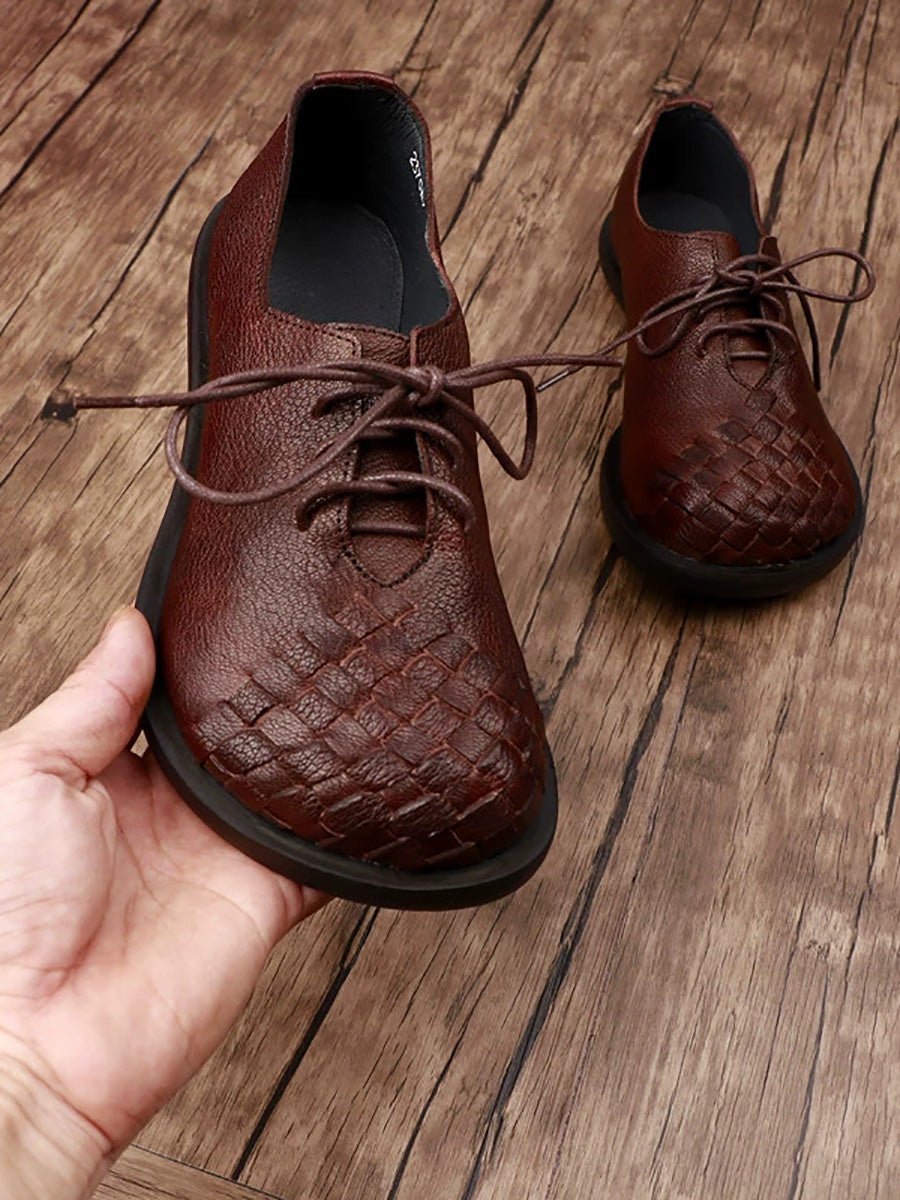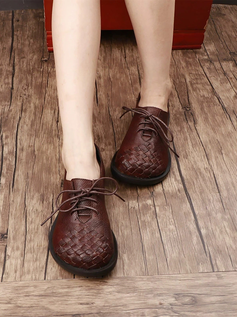 Kvenskór úr vintage leðri úr fléttuðu leðri