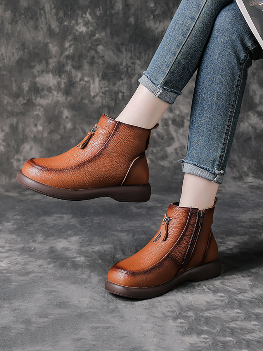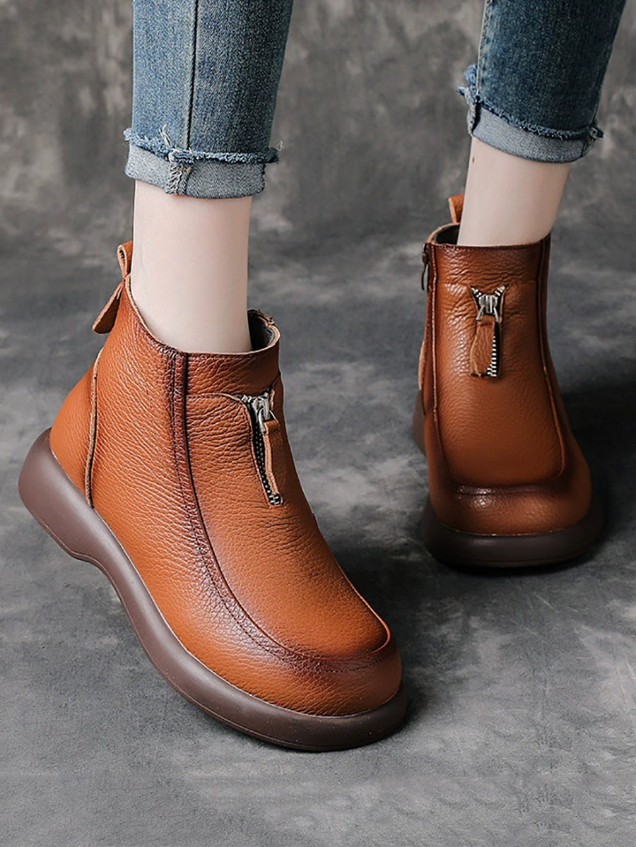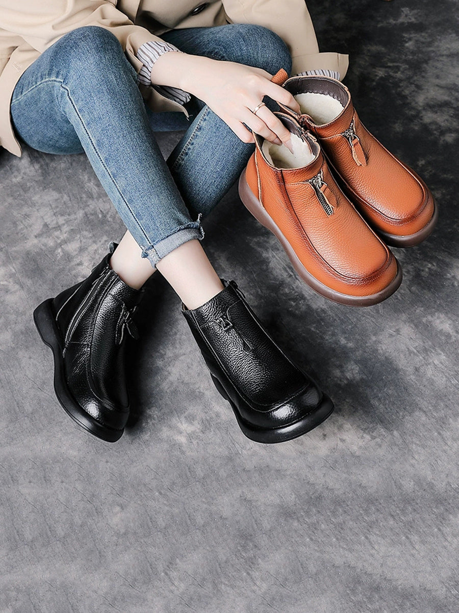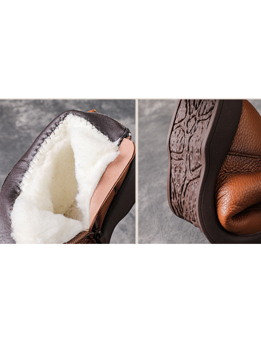 Vetrarstígvél úr ekta leðri úr flísfóðri fyrir konur