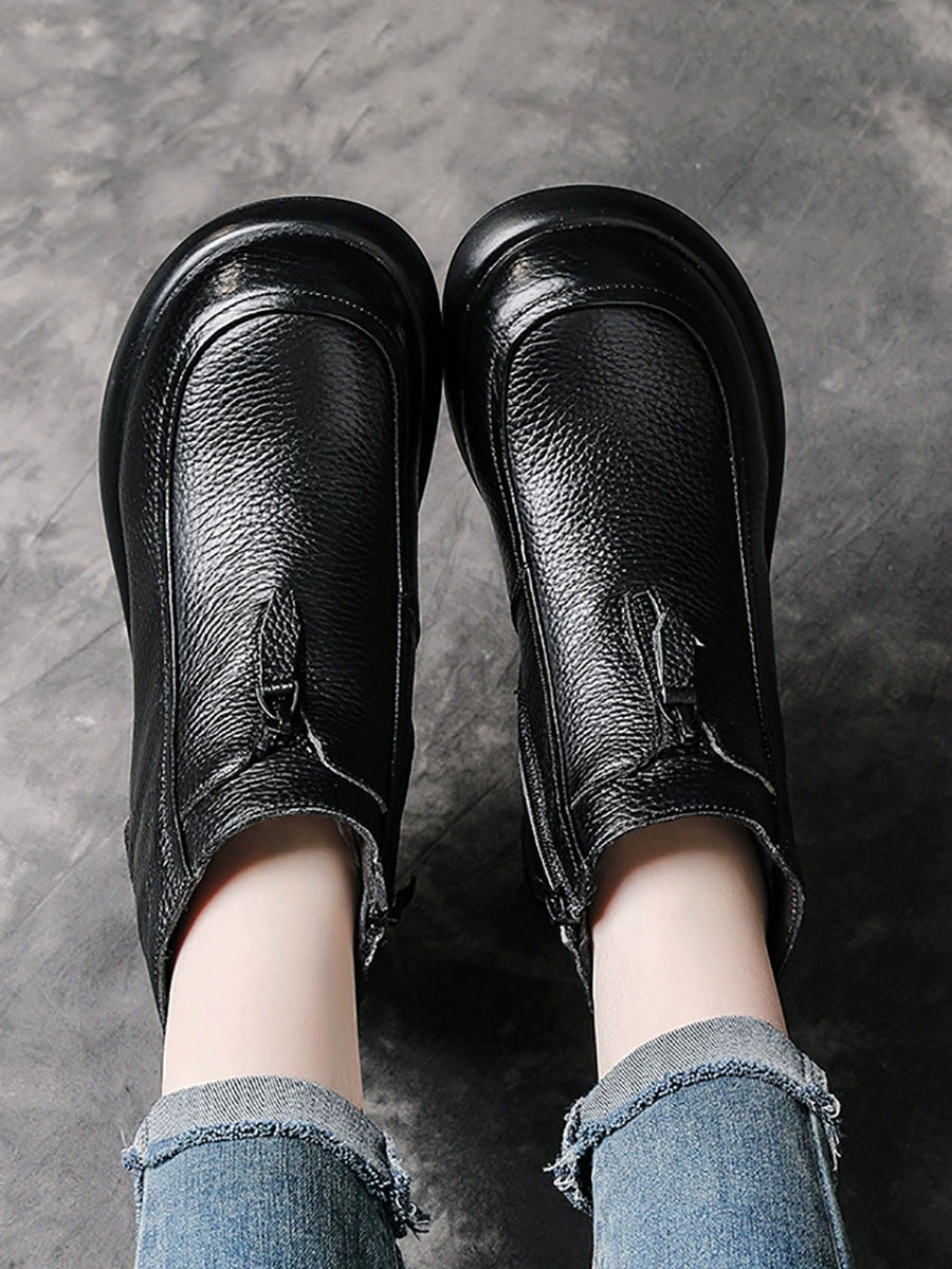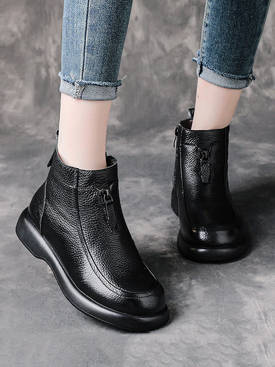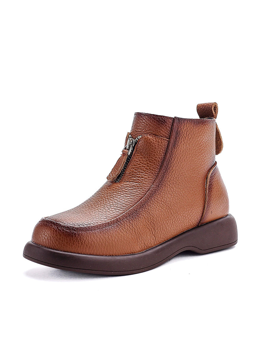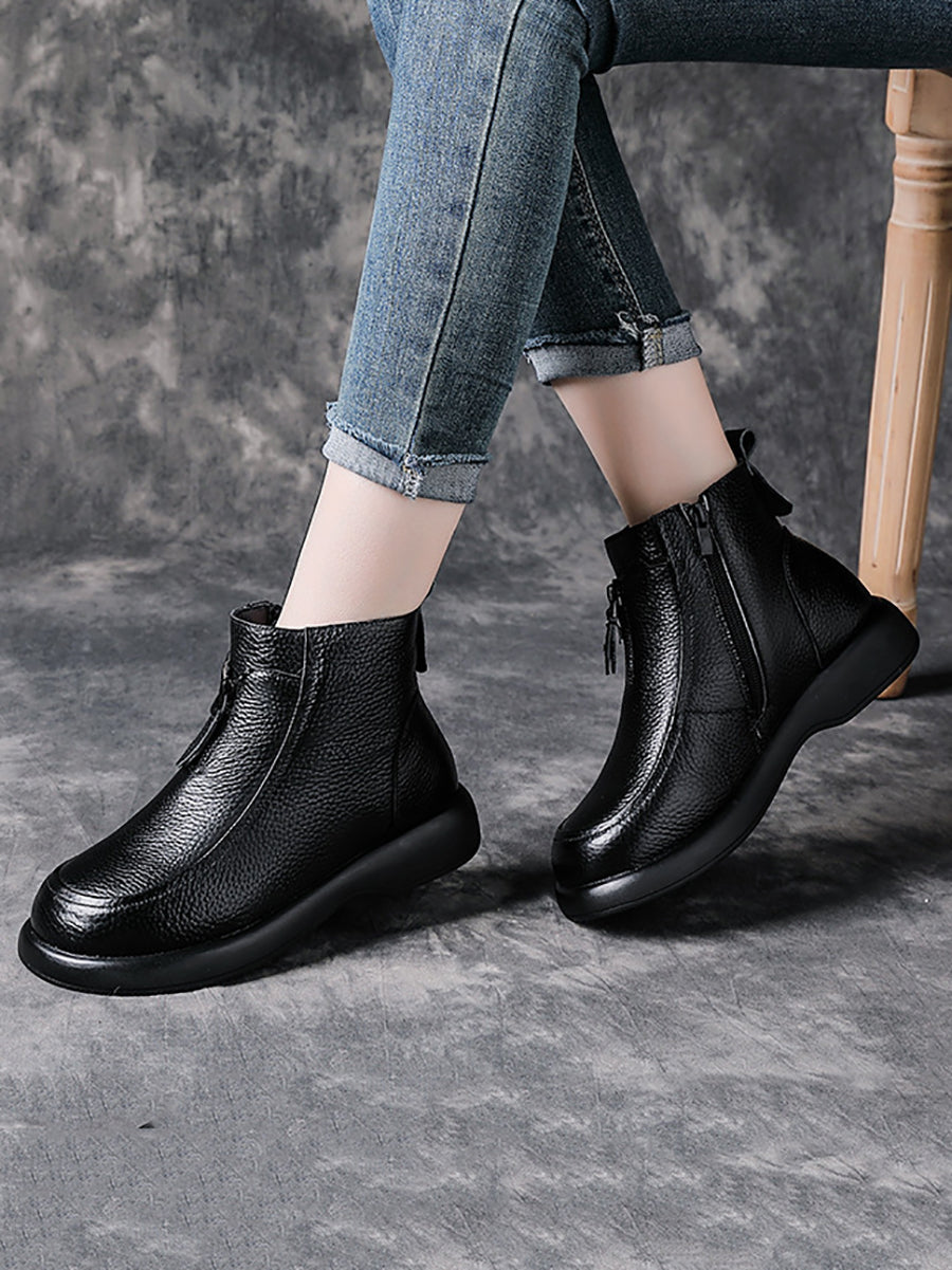 Vetrarstígvél úr ekta leðri úr flísfóðri fyrir konur