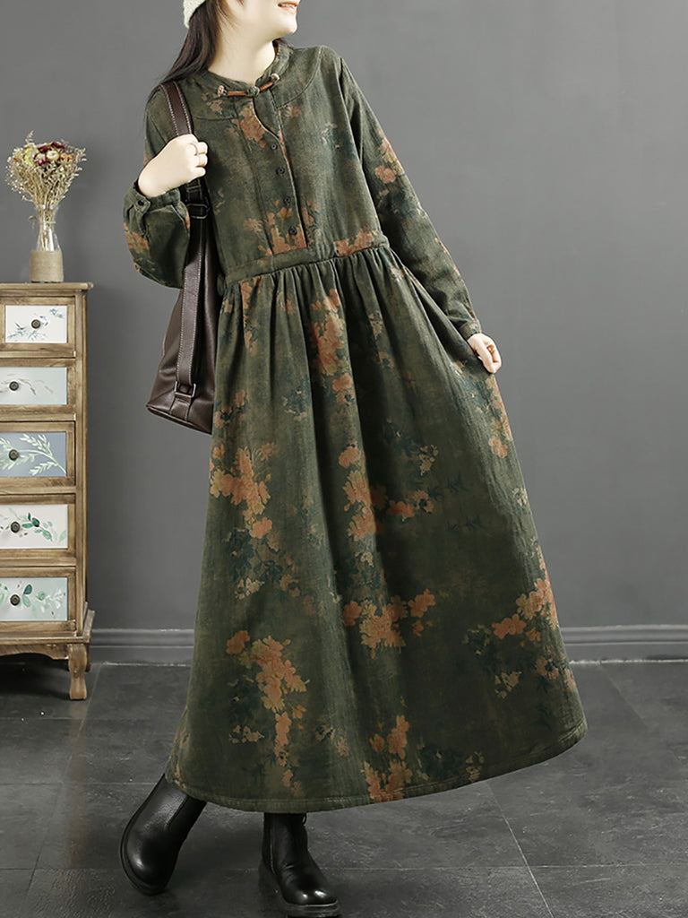 Camicia a maniche lunghe con scollo a V e stampa vintage da donna taglie forti