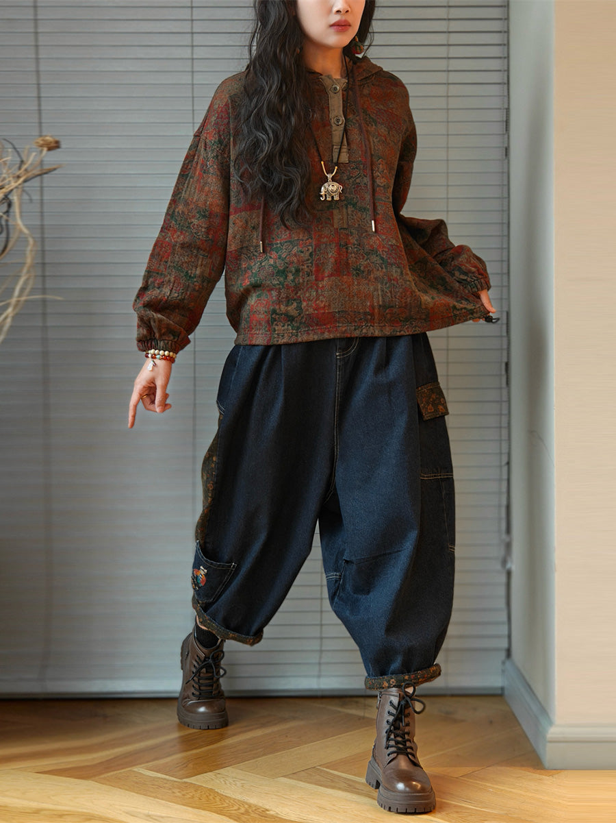Realizzata in 100% lino, questa camicetta vanta un classico collo a dolcevita e ampie maniche raglan per un look autunnale vintage. Perfetta sia per la stagione primaverile che autunnale, questa camicetta presenta un motivo solido e uno stile senza tempo.