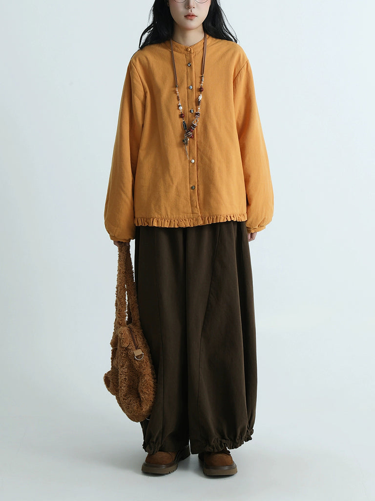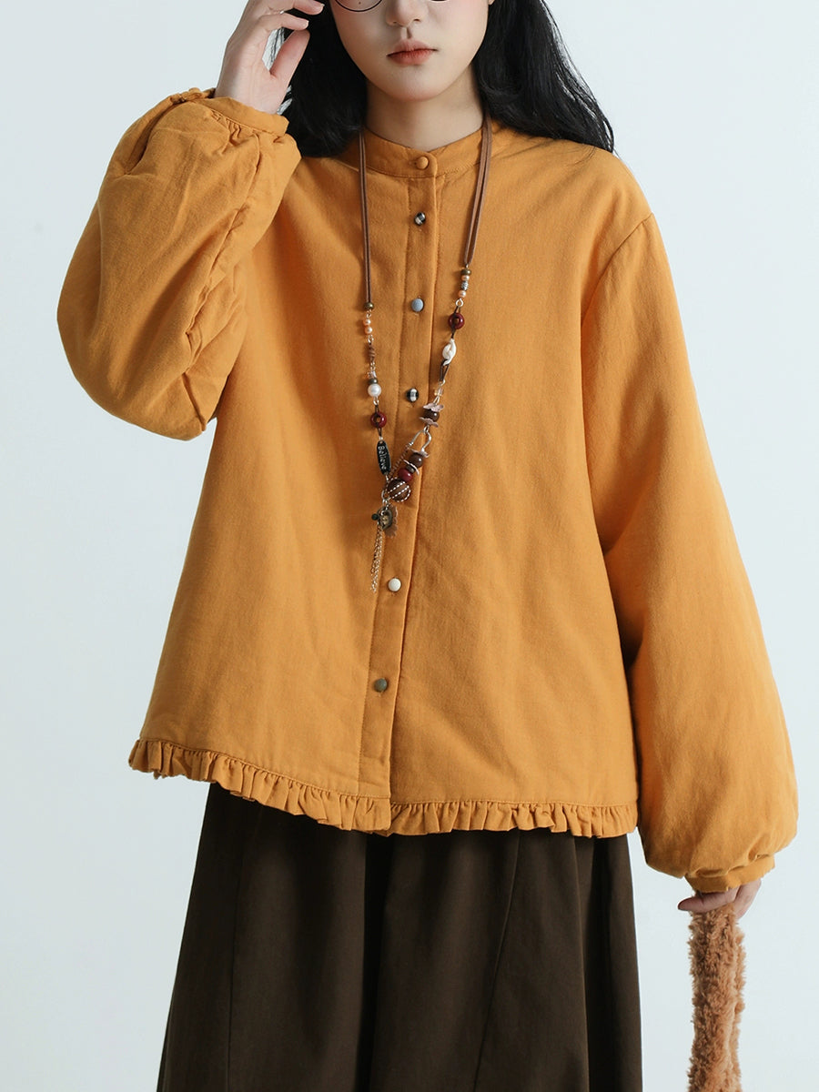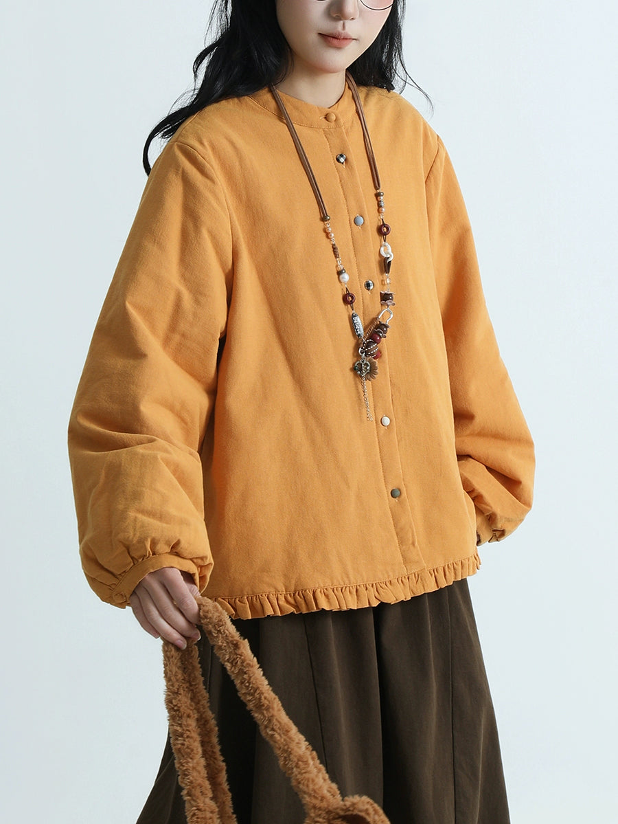 Camicetta da donna in cotone con collo alto e colori vivaci