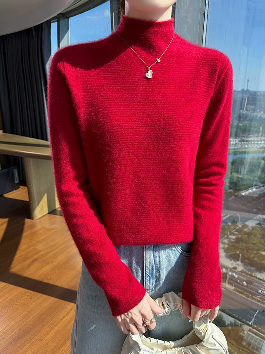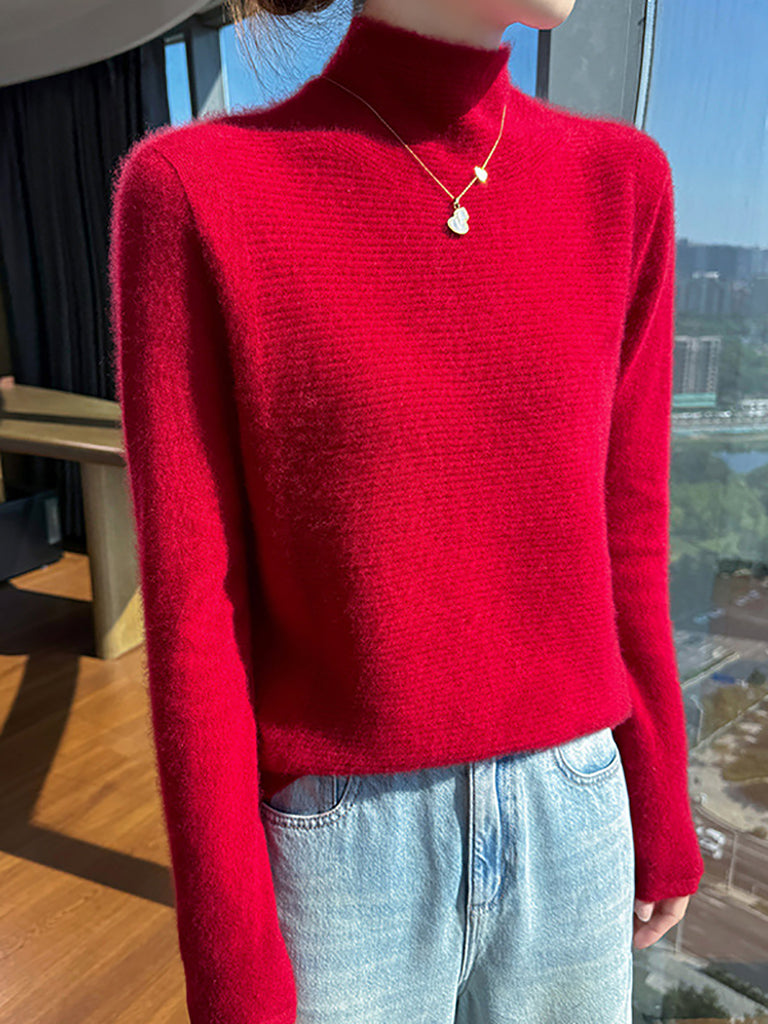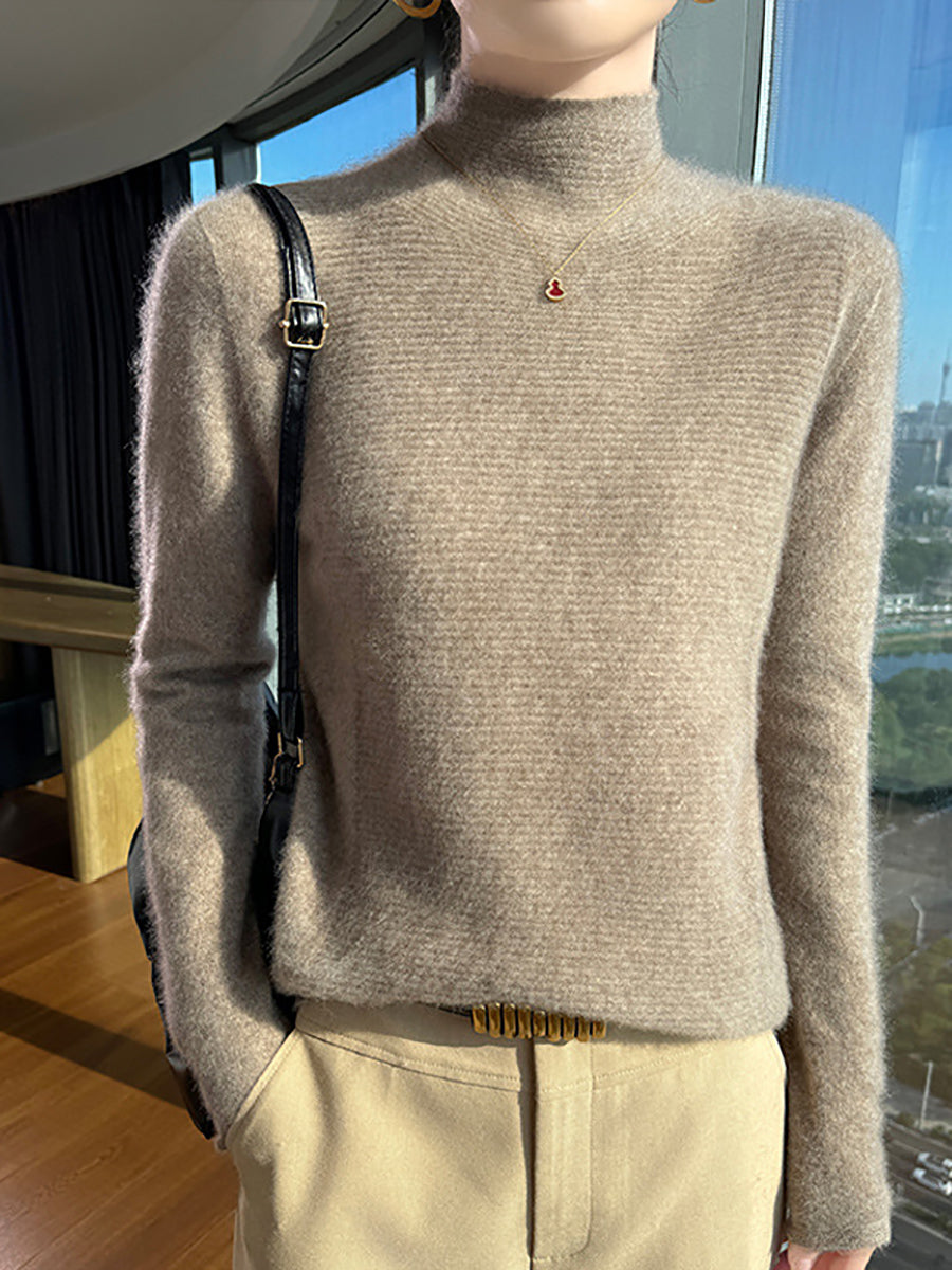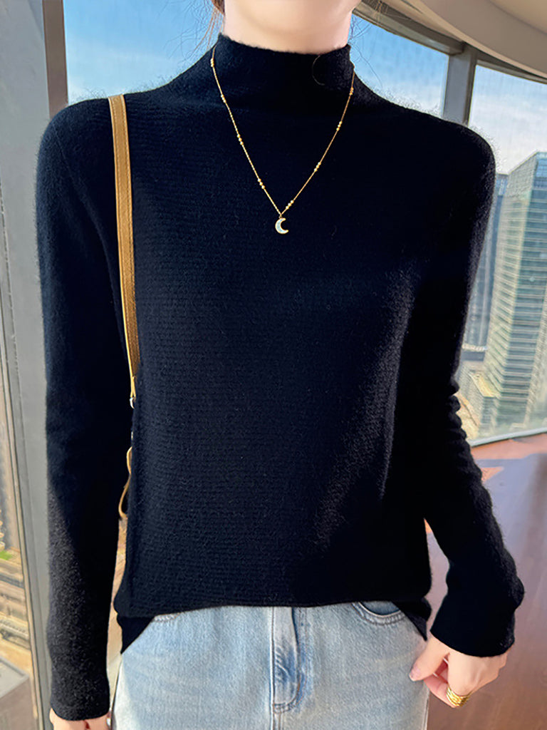 Maglione dolcevita da donna autunnale, colore puro, artistico