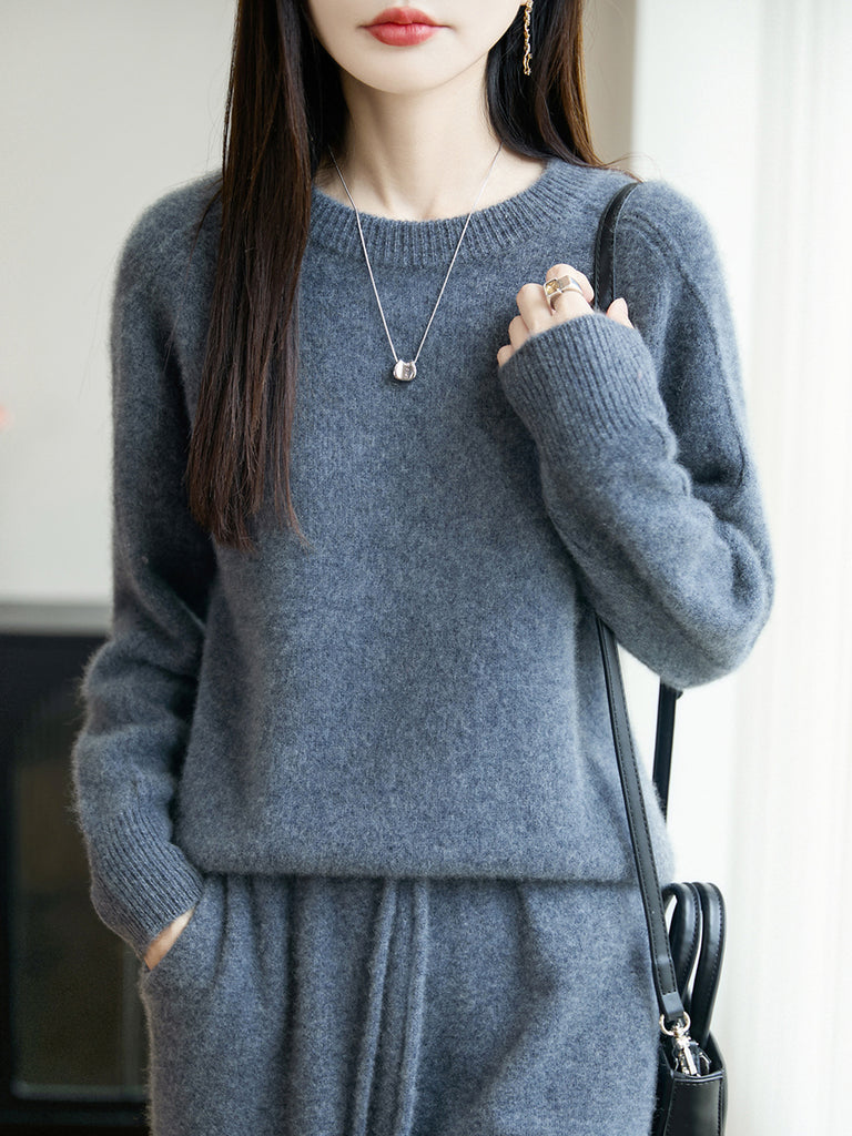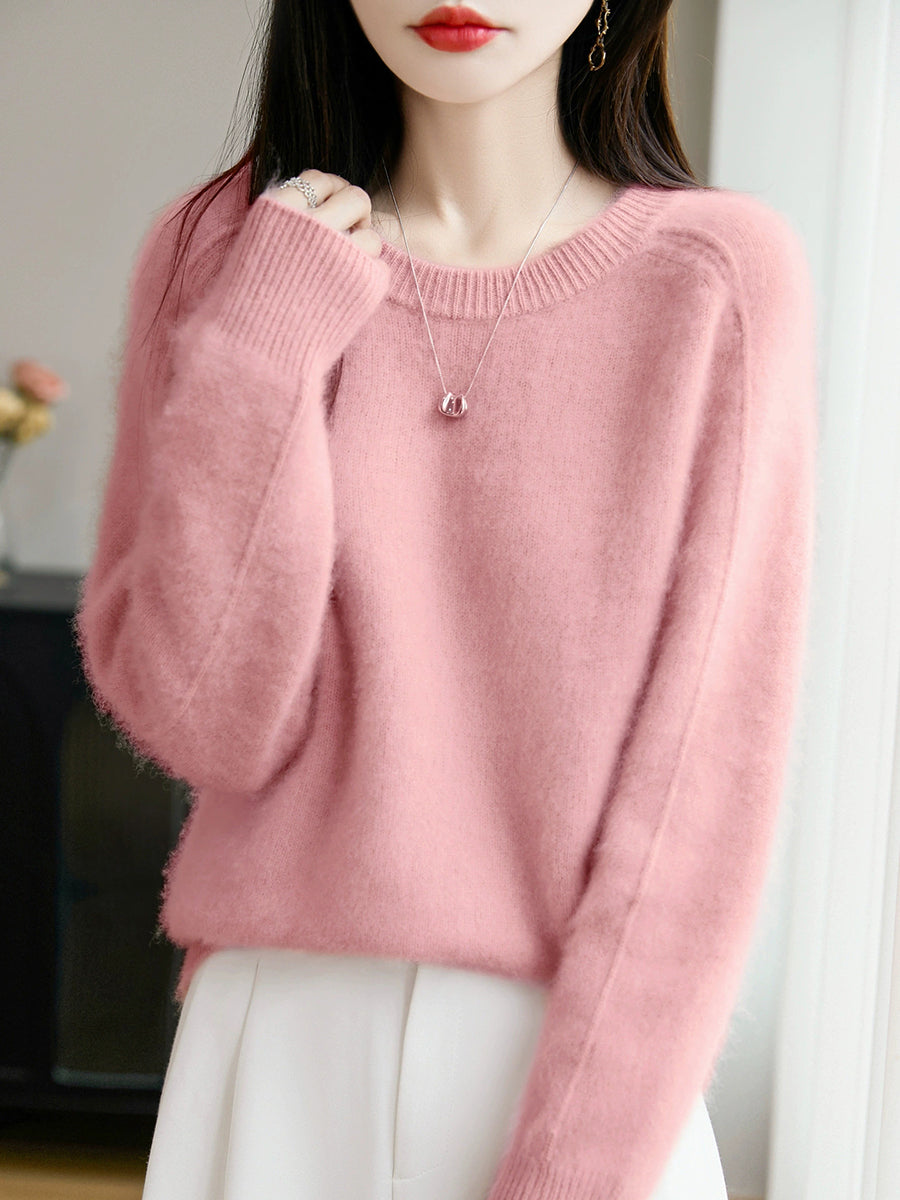 Maglione girocollo da donna autunnale, stile Artsy, colore puro