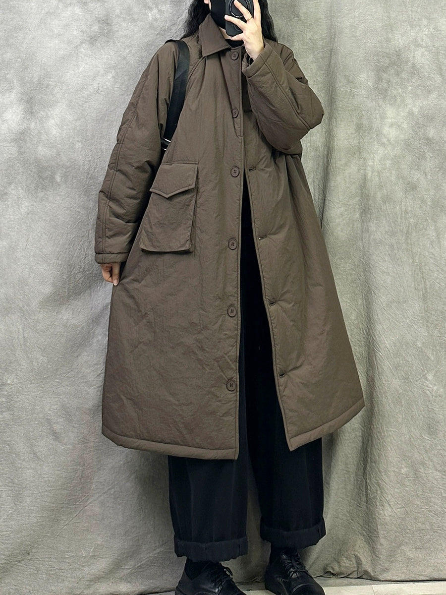 Cappotto lungo imbottito invernale da donna in tinta unita