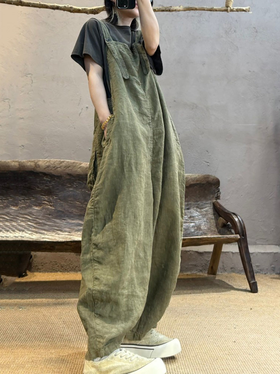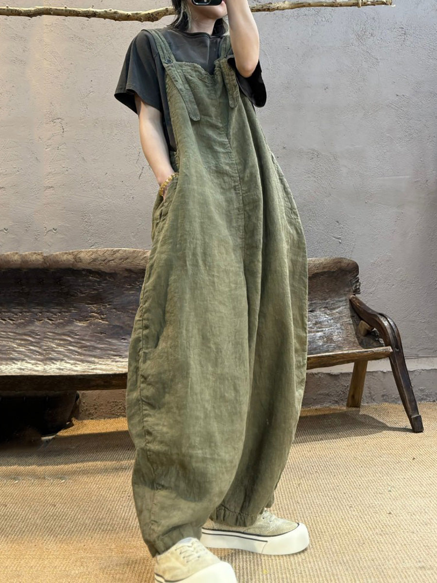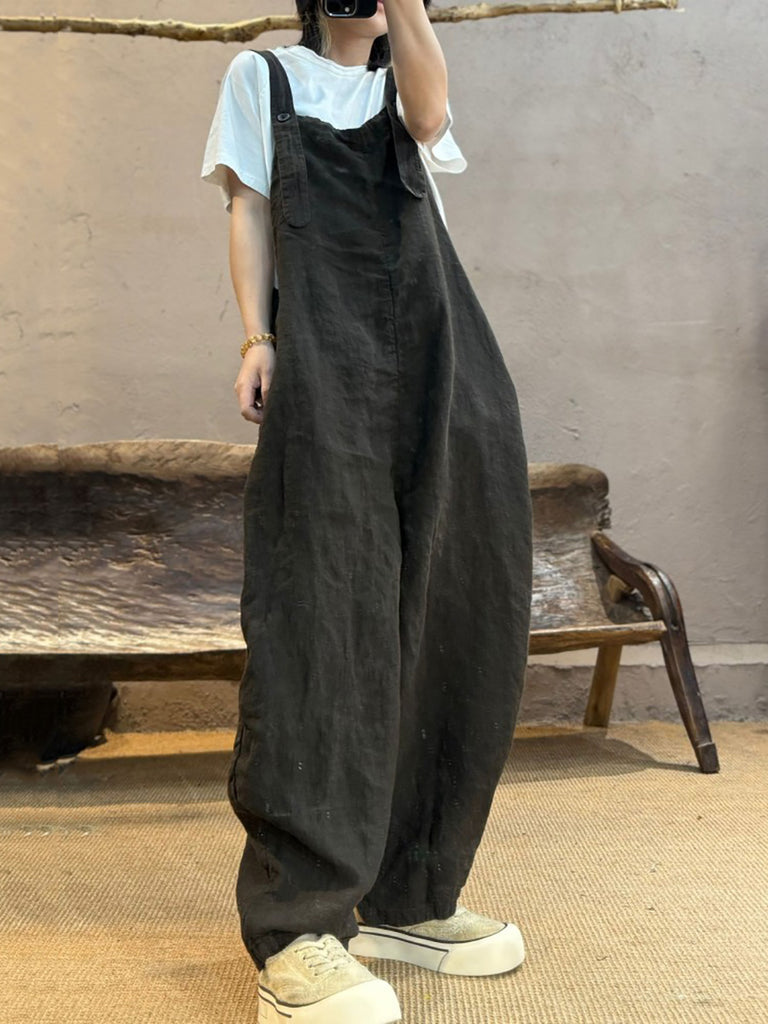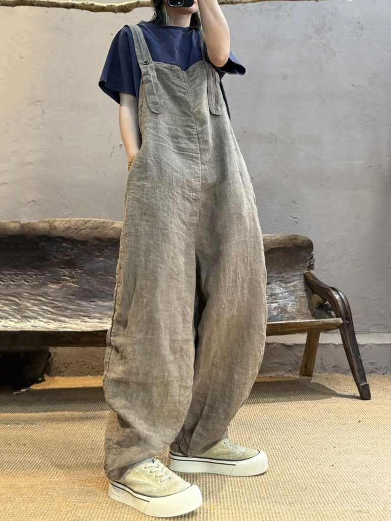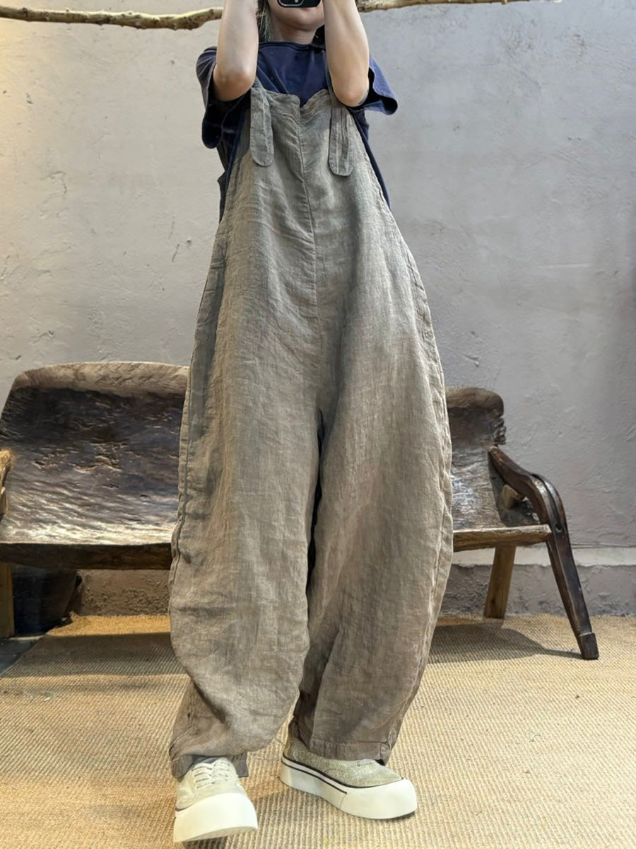 Tute larghe estive retrò da donna in lino puro, di colore puro