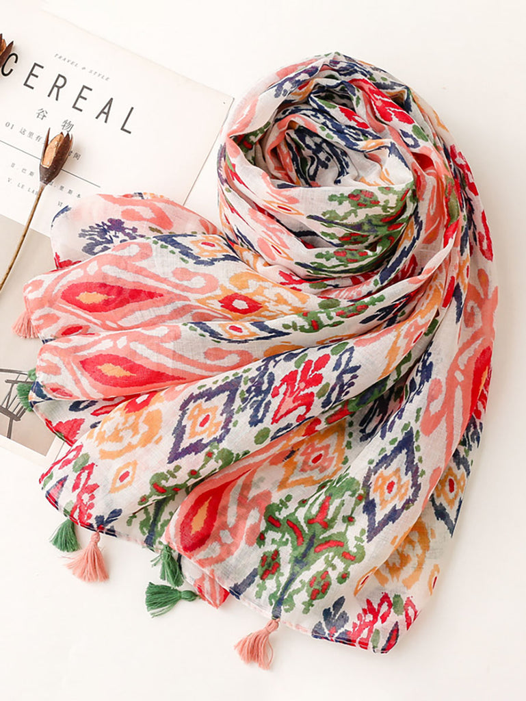 Questa sciarpa da donna con nappe con stampa multicolore presenta un elegante disegno floreale che farà risaltare il tuo outfit. La sciarpa è realizzata in tessuto di poliestere resistente e morbido. Questa sciarpa può essere indossata come accessorio di moda o come oggetto pratico.