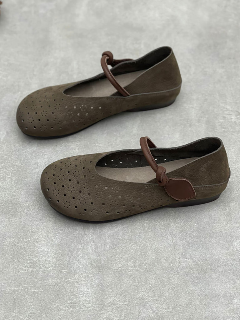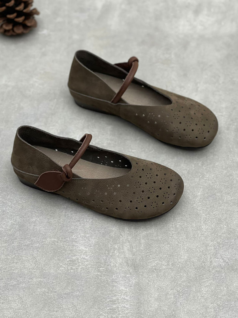 Scarpe da donna con tacco basso in pelle traforata e artistica