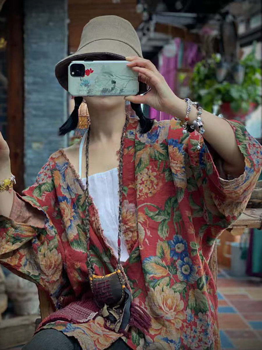 Camicia vintage allentata da donna floreale autunnale taglie forti