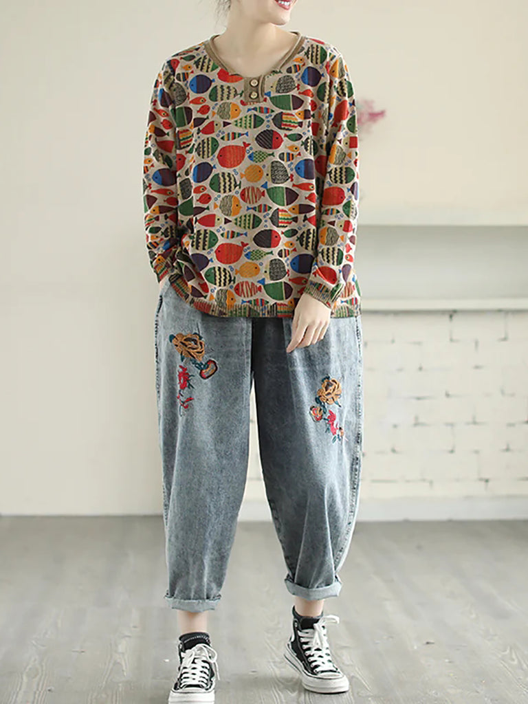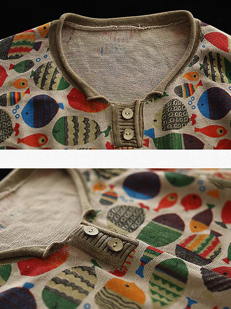 T-shirt lavorata a maglia con stampa di pesce girocollo taglie forti
