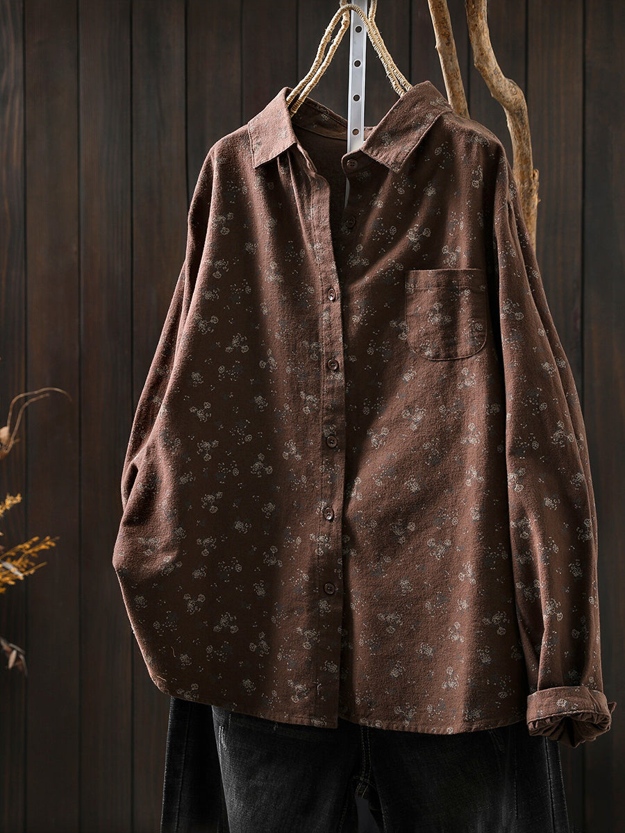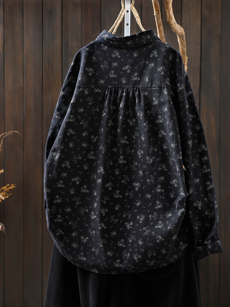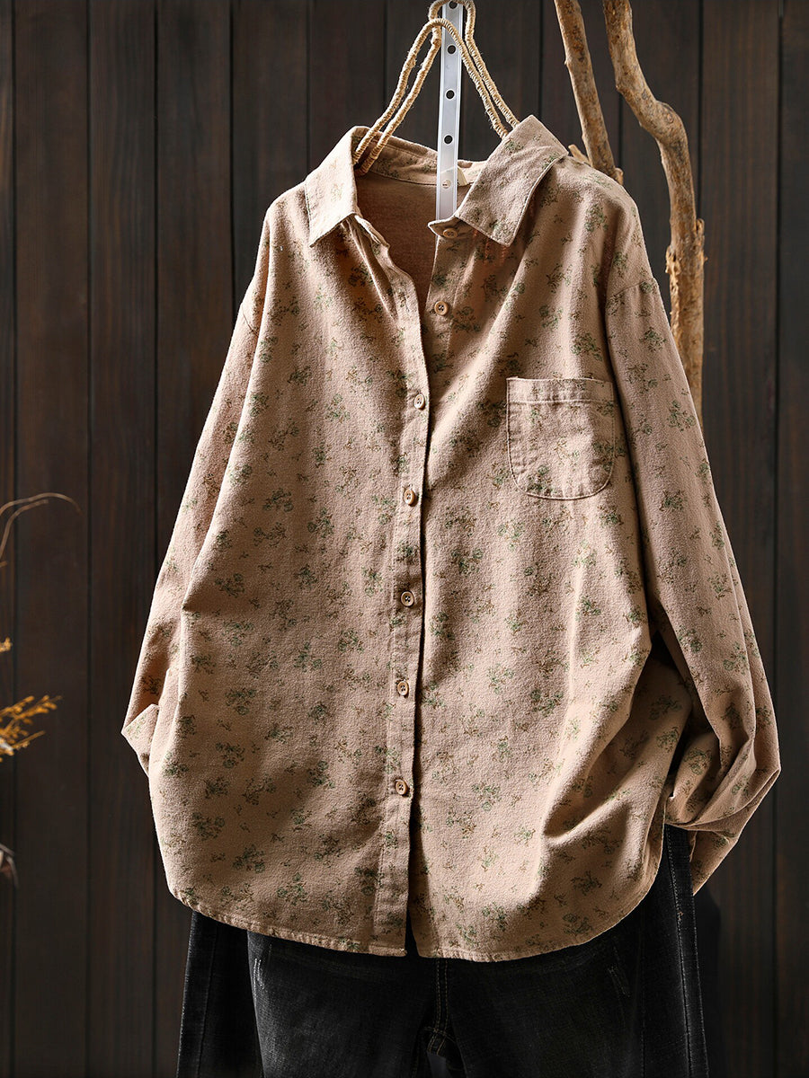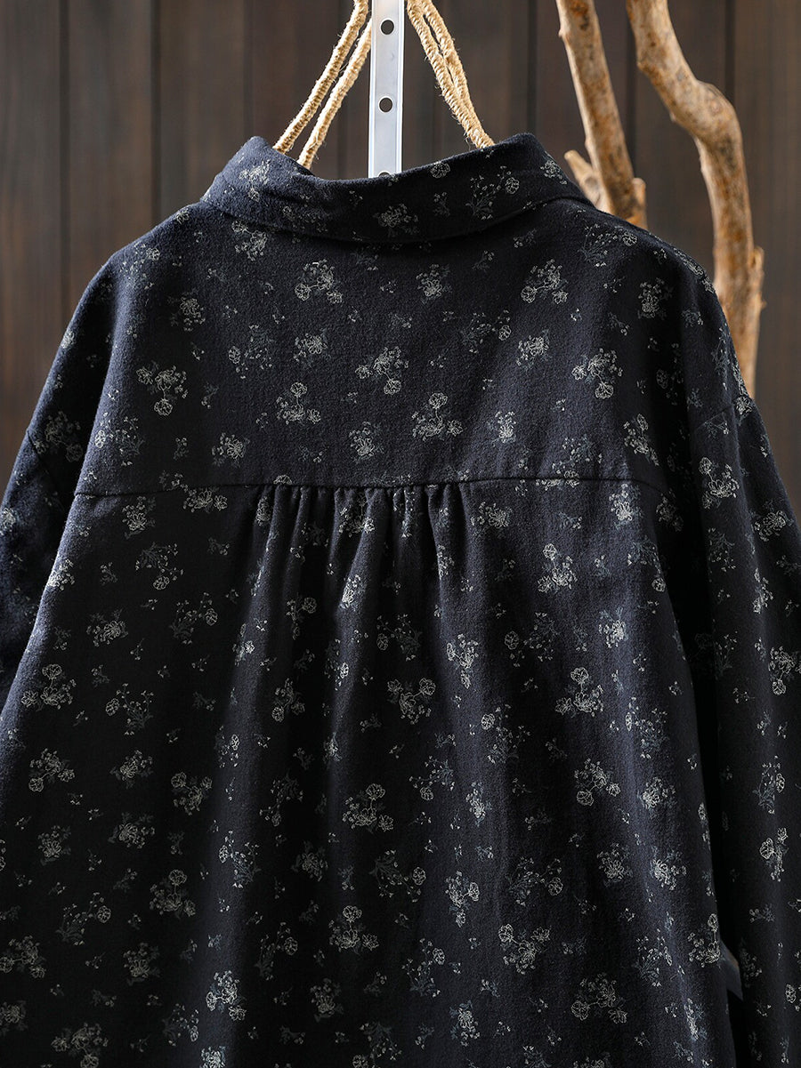 Camicetta da donna in cotone con colletto rovesciato, motivo floreale autunnale