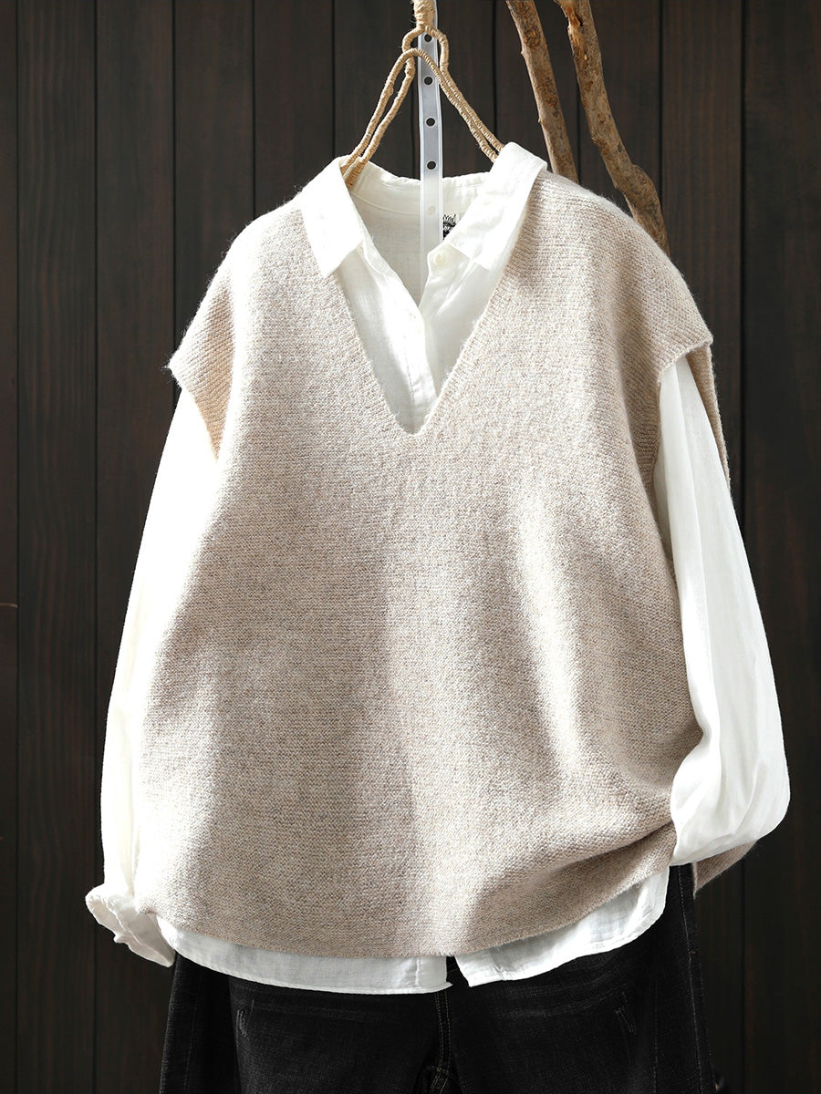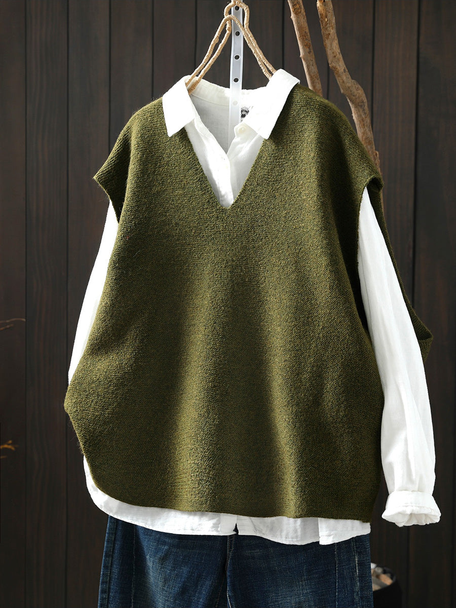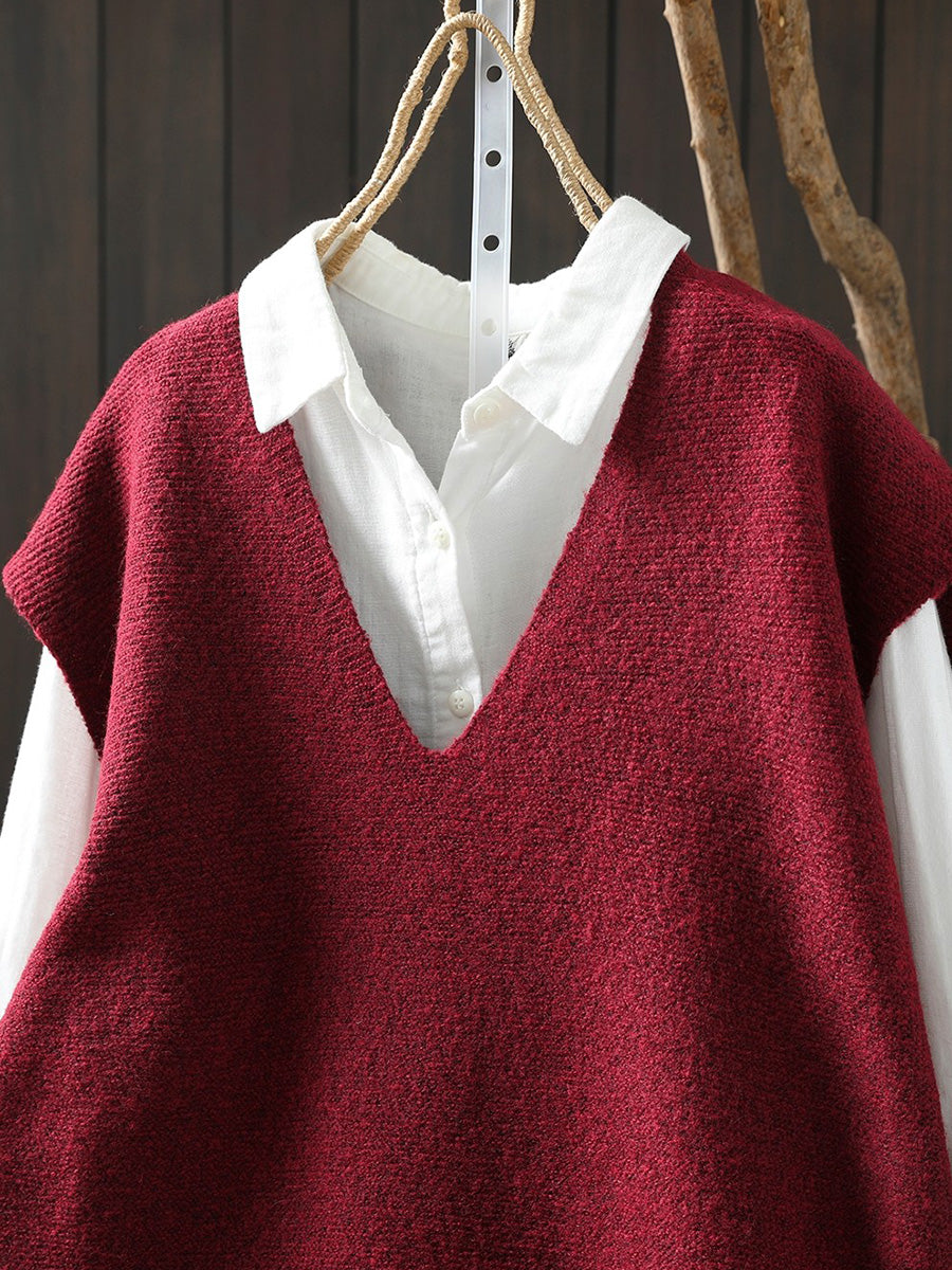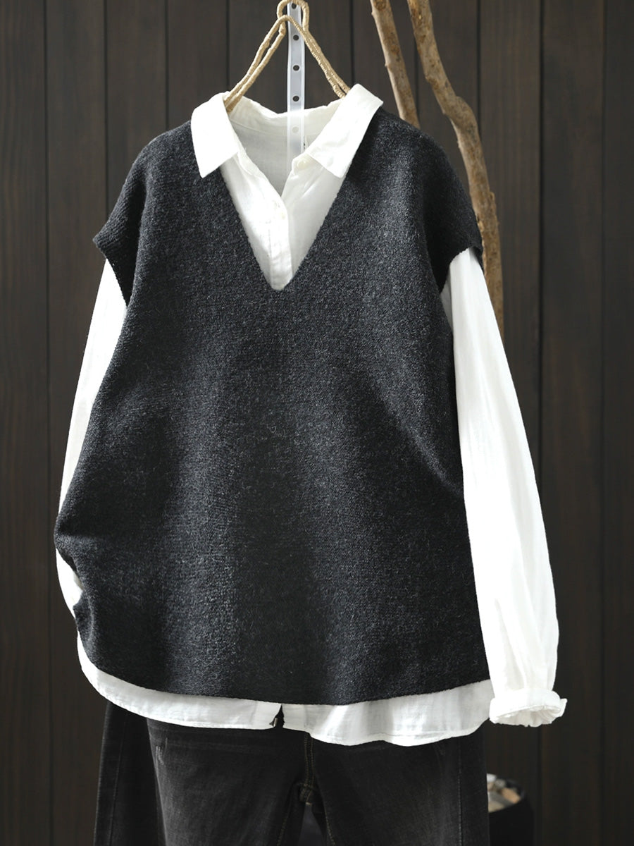 Gilet lavorato a maglia con scollo a V e orlo color puro da donna