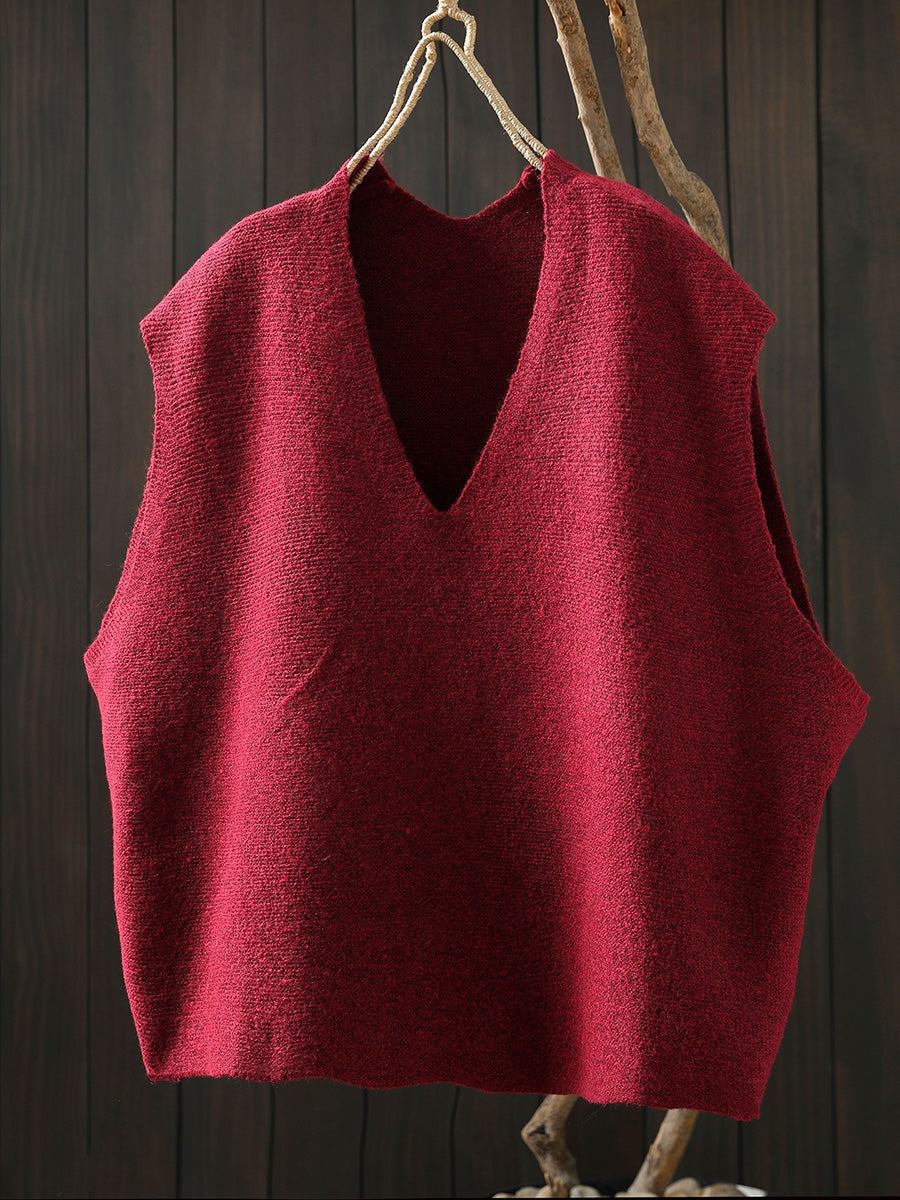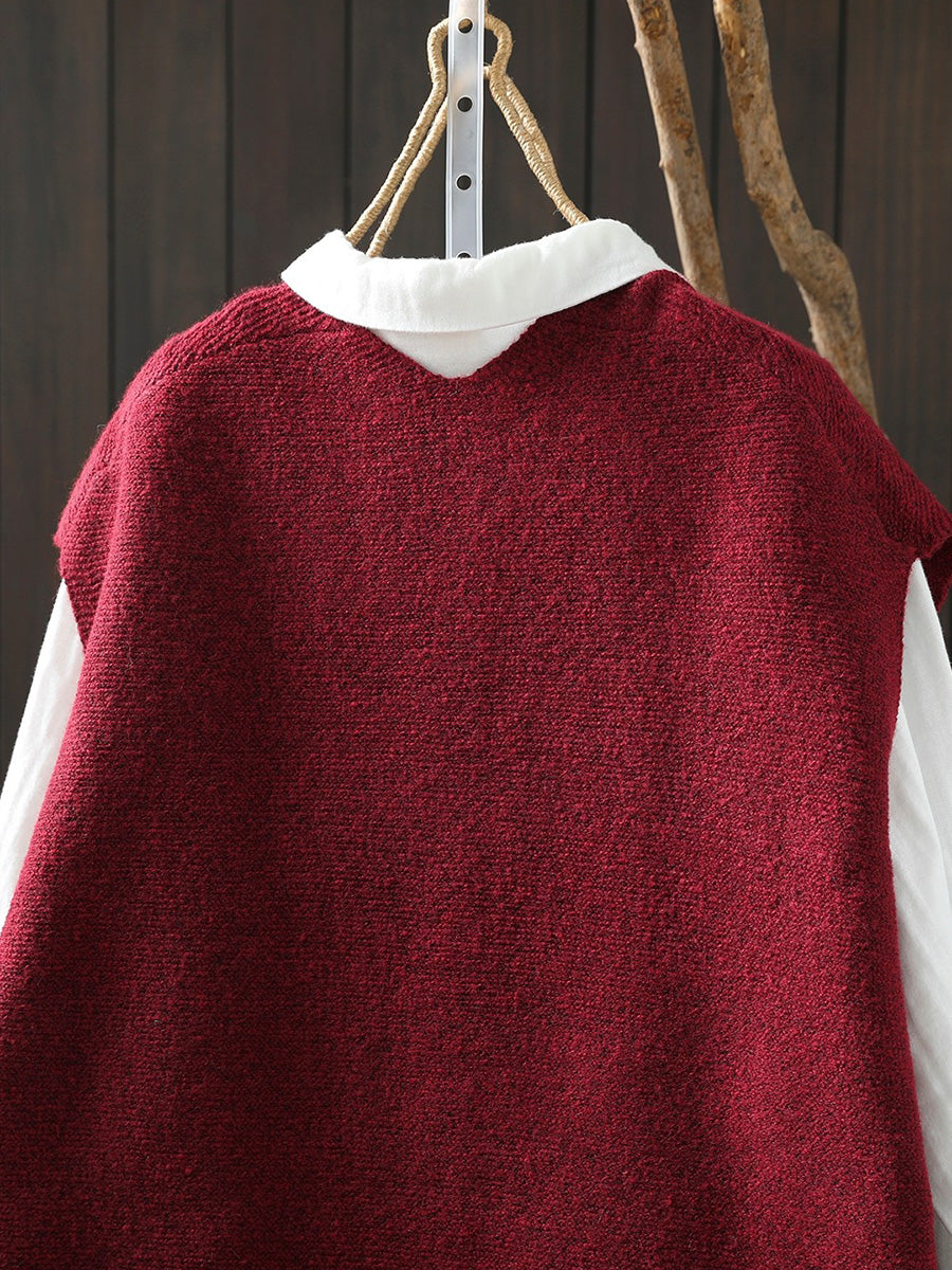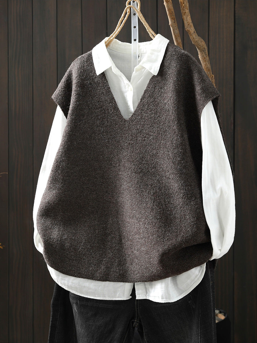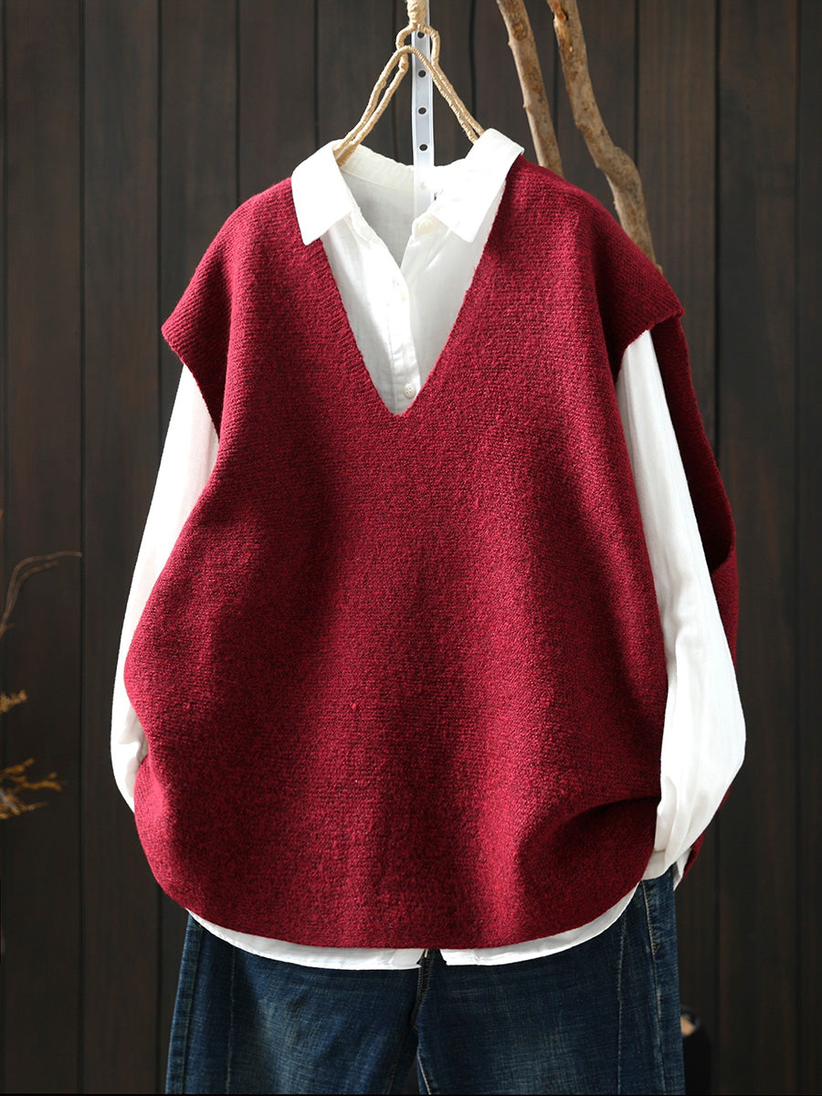 Gilet lavorato a maglia con scollo a V e orlo color puro da donna