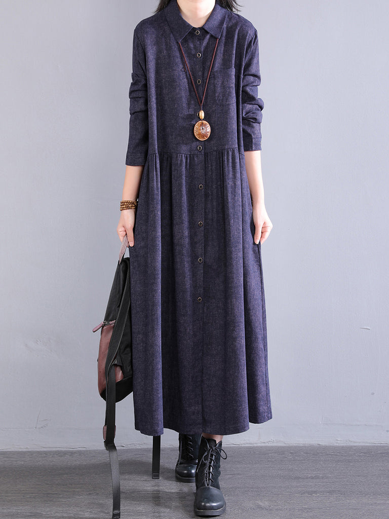 Abito da donna in puro cotone con colletto rovesciato, colore autunno 100%