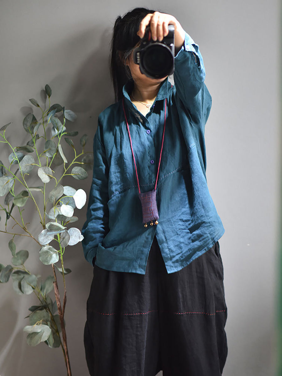 Presenta un colletto risvoltato e maniche raglan lunghe, rendendolo adatto per un abbigliamento casual durante la stagione primaverile ed estiva.