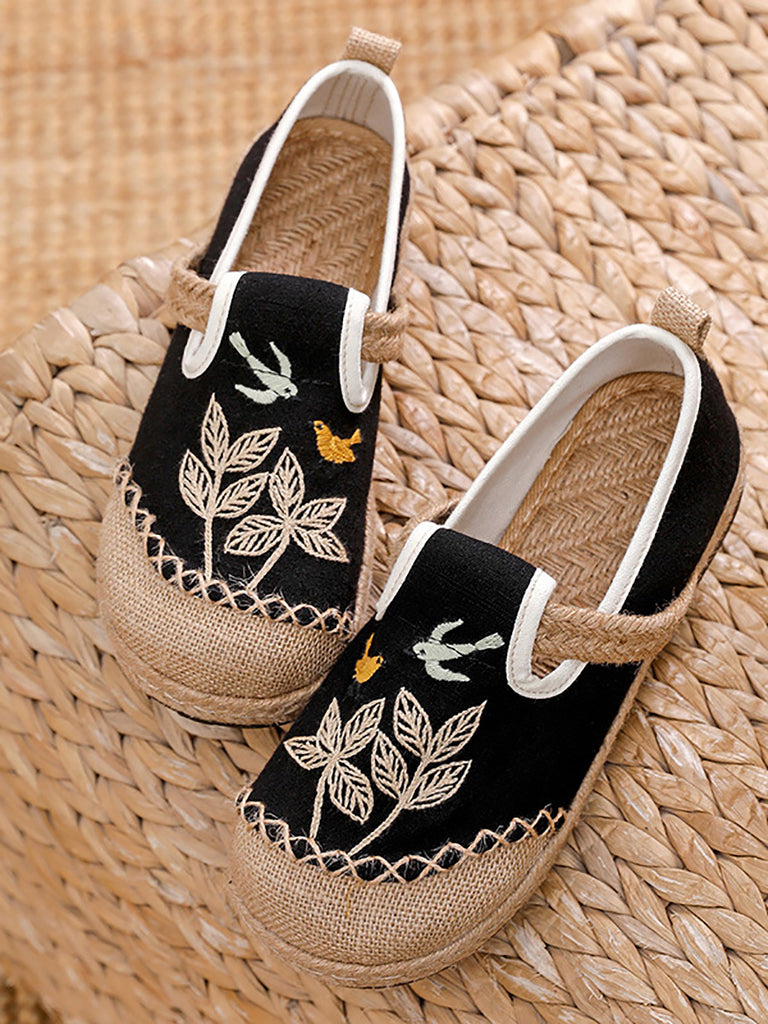 Scarpe da donna in lino e cotone con ricamo etnico floreale