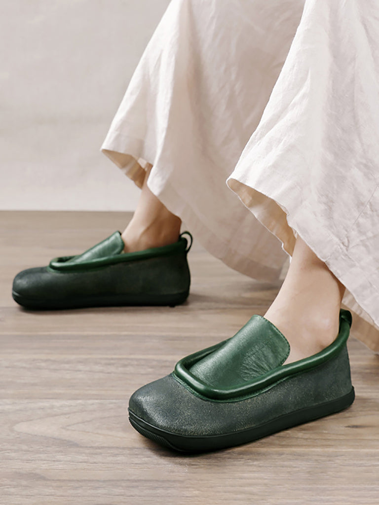 Scarpe da donna piatte in pelle vintage con punta tonda