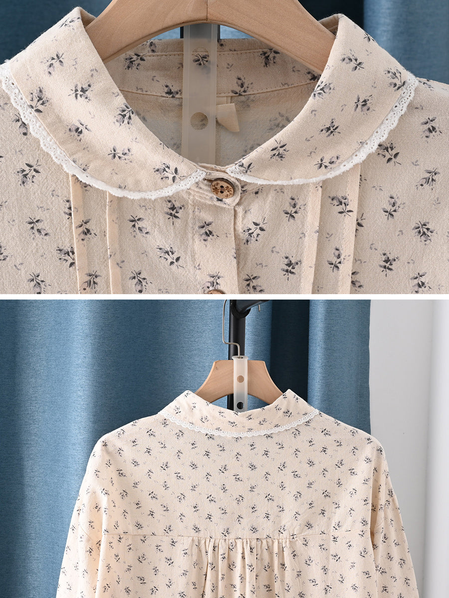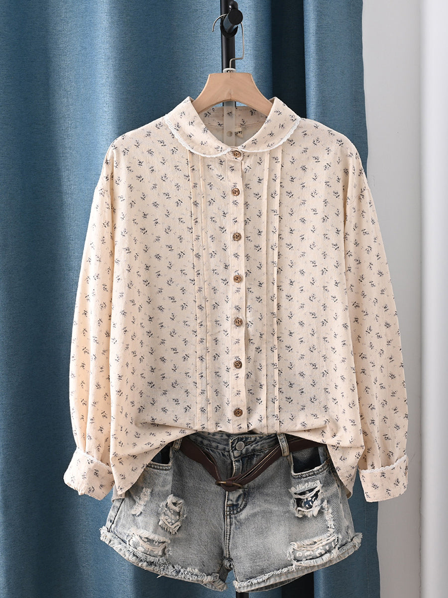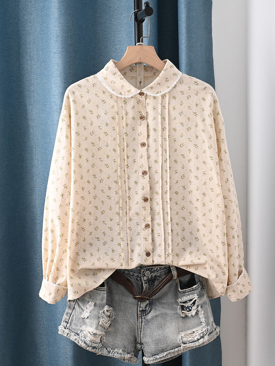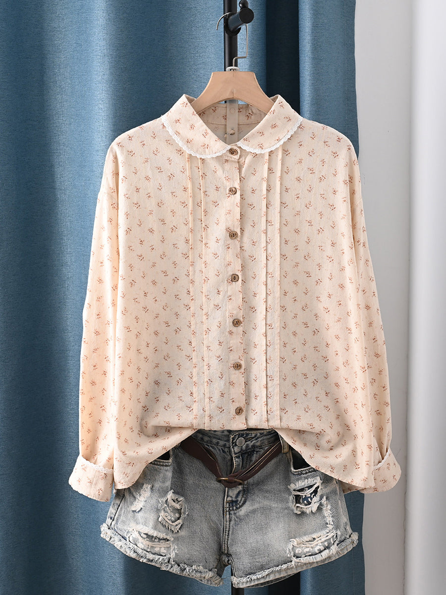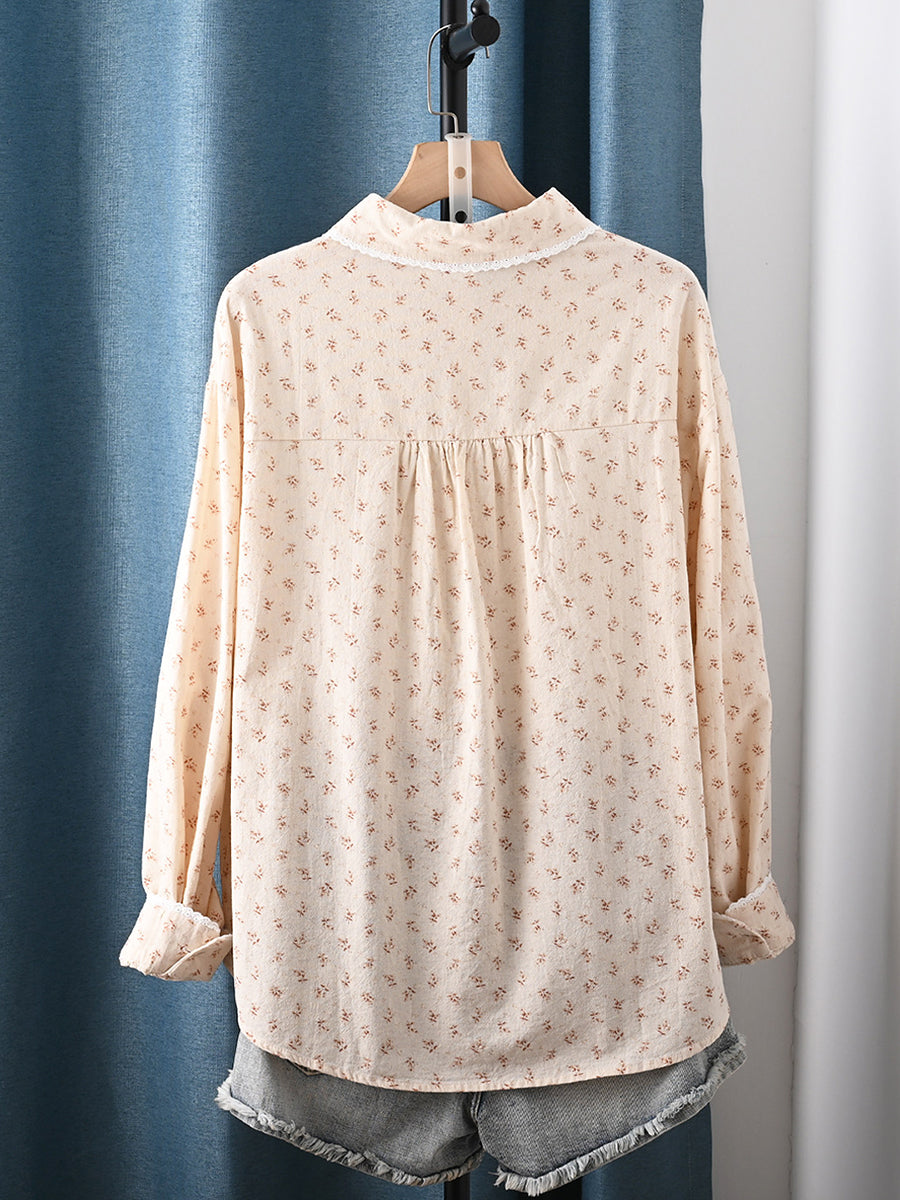 Camicia da donna primaverile con colletto rovesciato, motivo floreale, 100% cotone