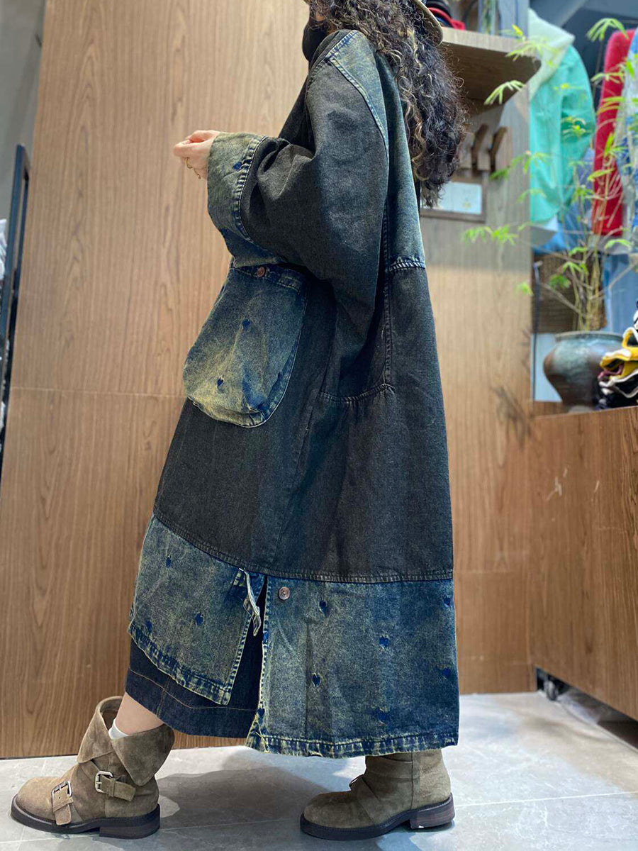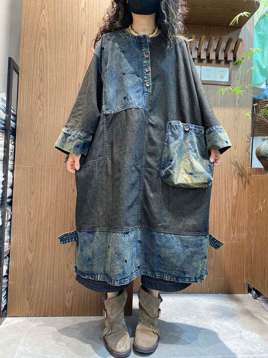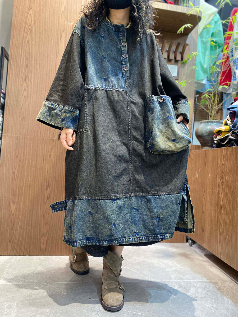 Abito estivo da donna vintage in denim patchwork con scollo a O