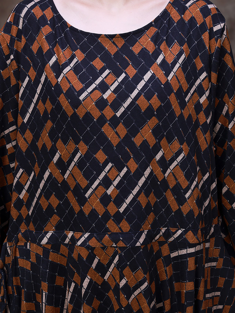 Abito lungo da donna con orlo largo scozzese irregolare vintage taglie forti