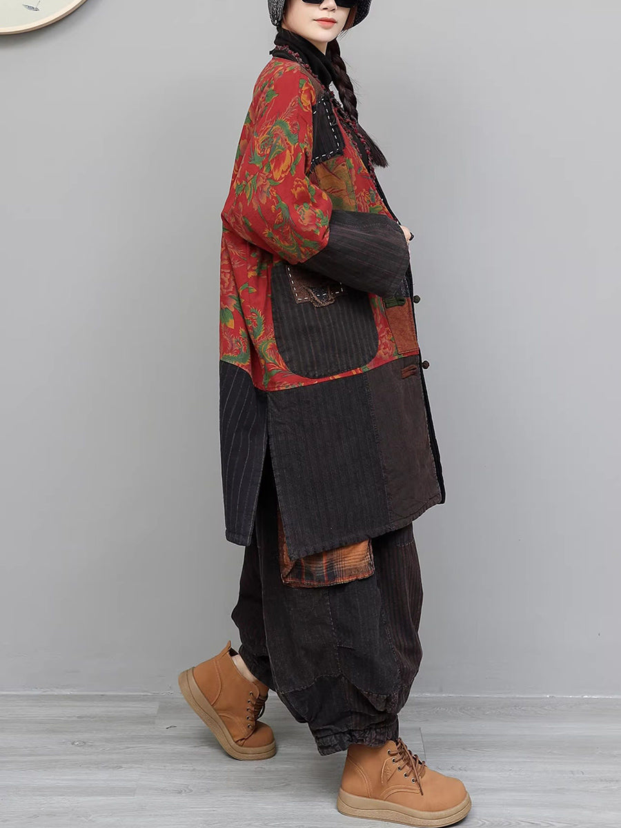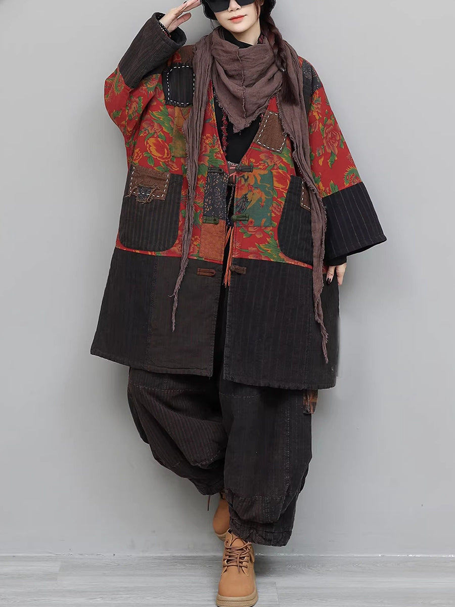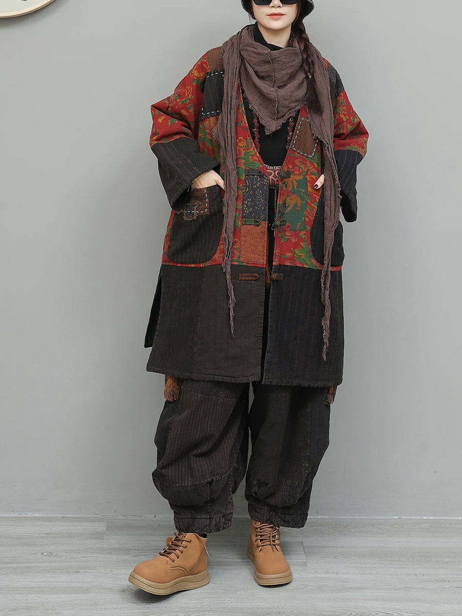 Tute imbottite invernali da donna con scollo a V e toppe etniche