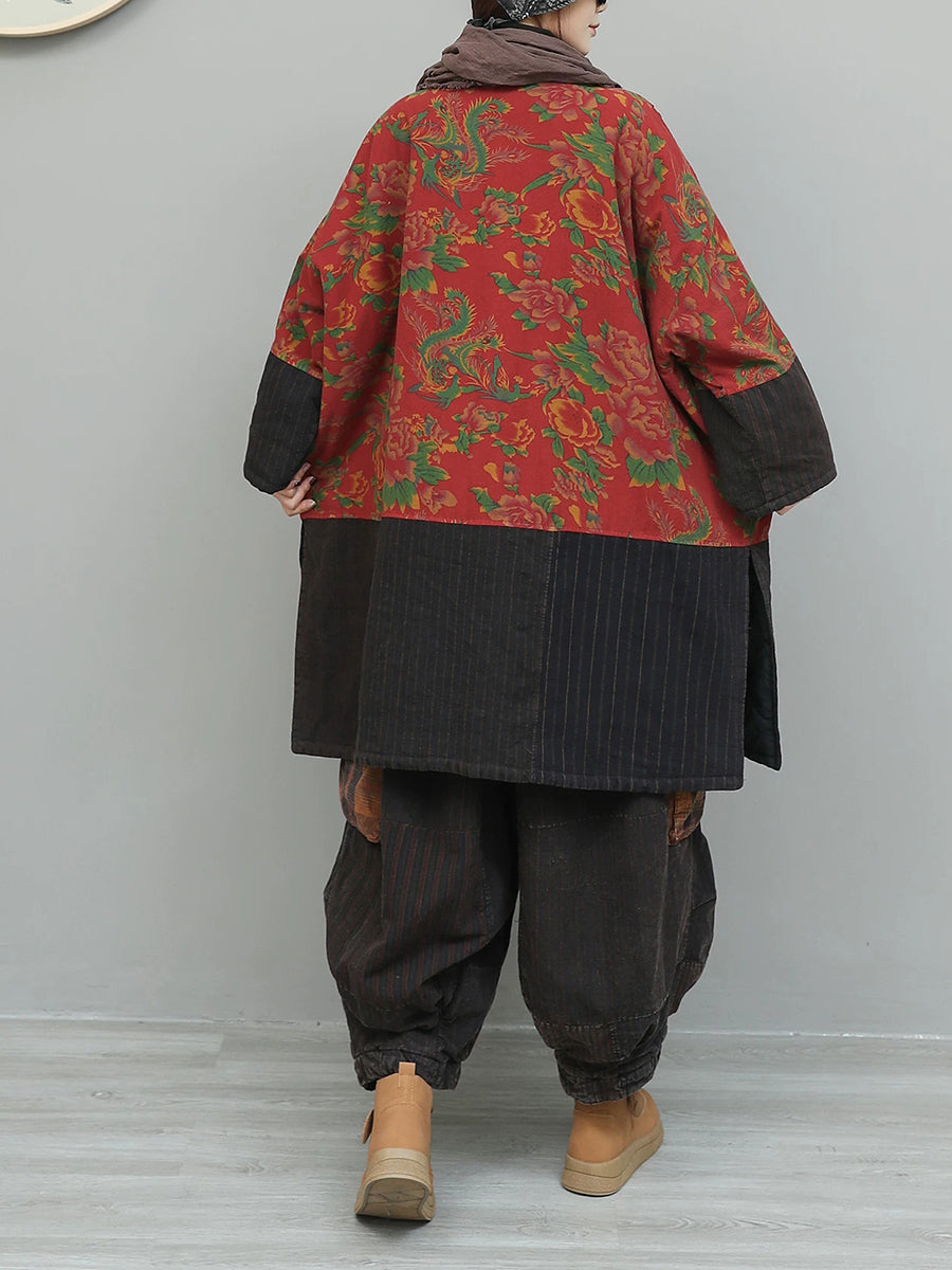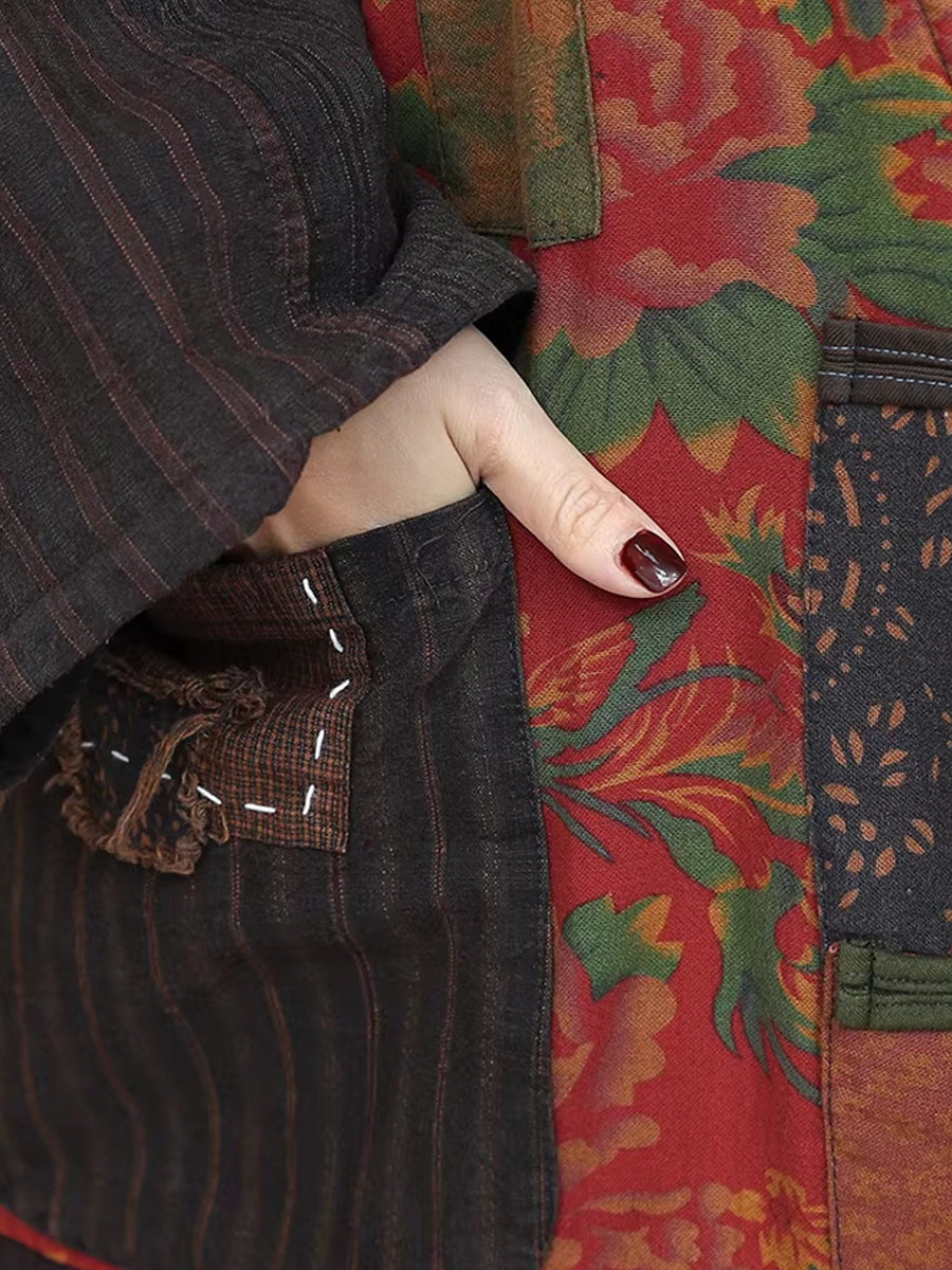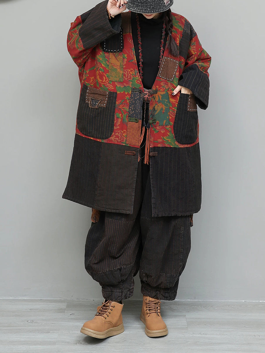 Tute imbottite invernali da donna con scollo a V e toppe etniche